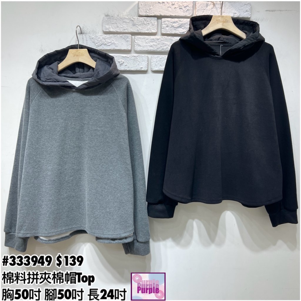 (訂貨大約20天) #333949 棉料拼夾棉帽Top (胸50吋 腳50吋 長24吋)