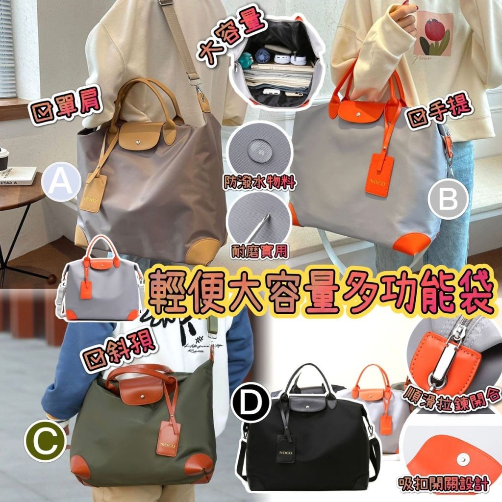 呢款輕便大容量多功能袋,簡約又美觀!手提、單肩、斜孭,超實用!牛津布防潑水,落雨都唔驚整濕!