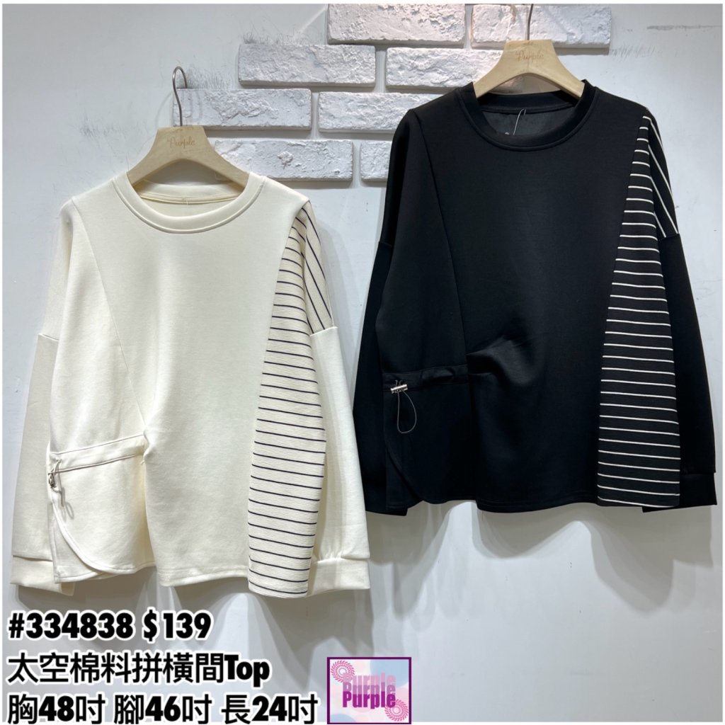 主頁 (訂貨大約20天) #334838 太空棉料拼橫間Top (胸48吋 腳46吋 長24吋)