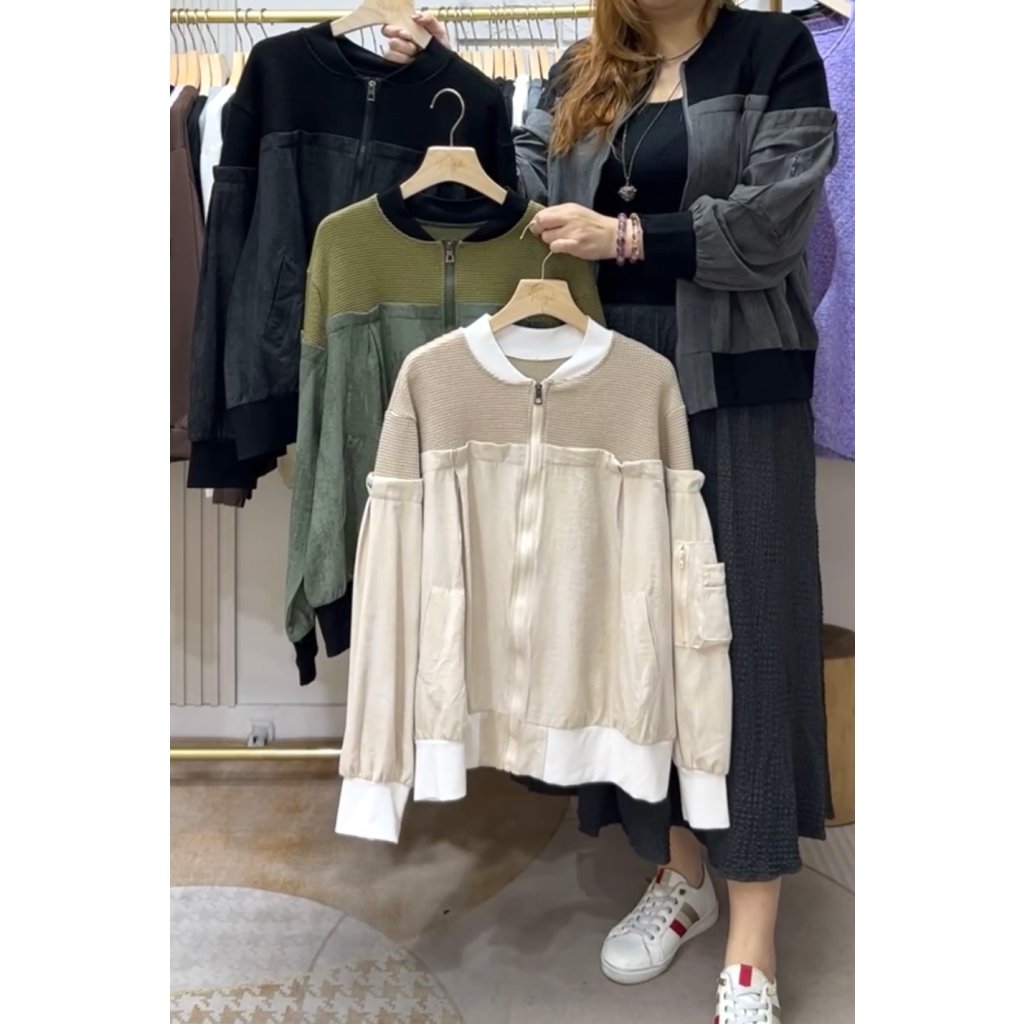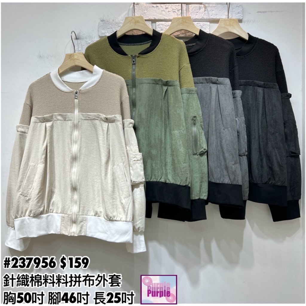(訂貨大約20天) #237956 針織料拼布外套 (胸50吋 腳46吋 長25吋)
