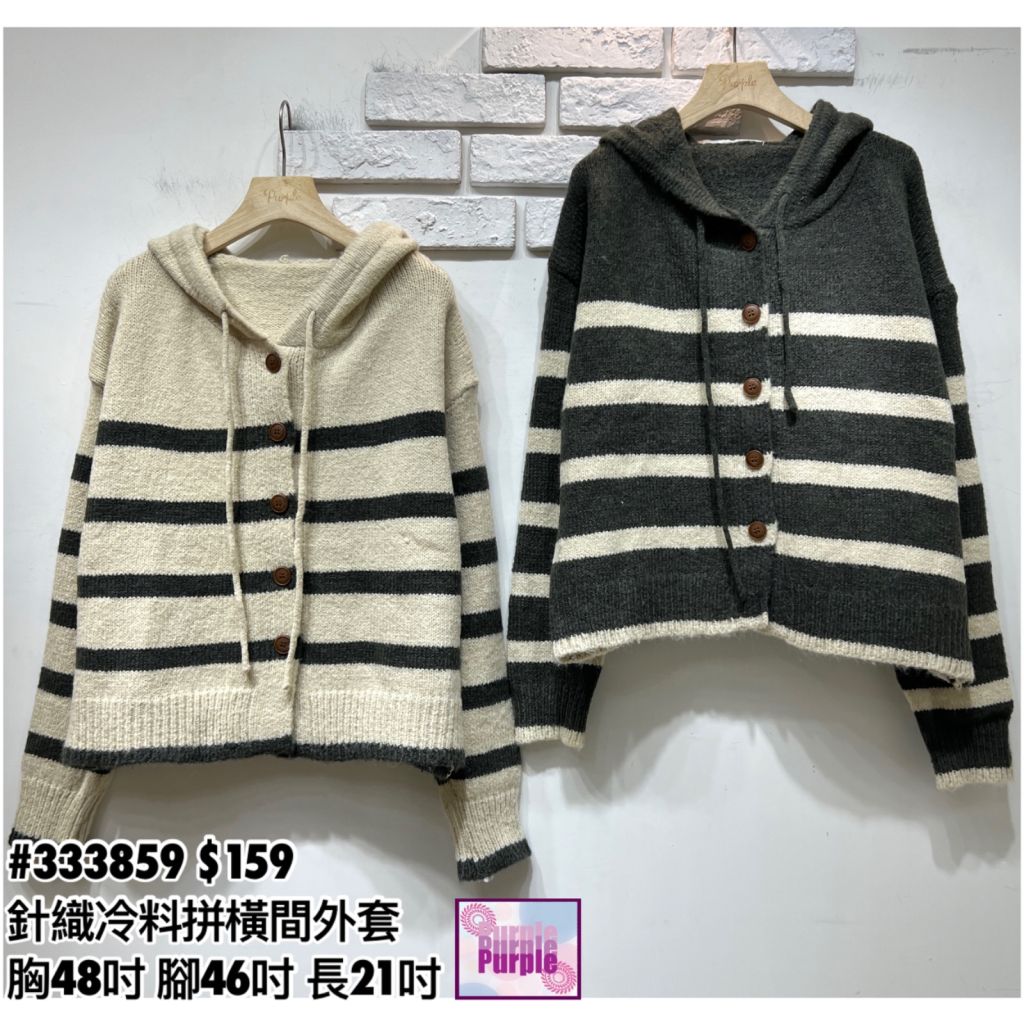 (現貨) #333859 針織冷料拼橫間外套 (胸48吋 腳46吋 長21吋)