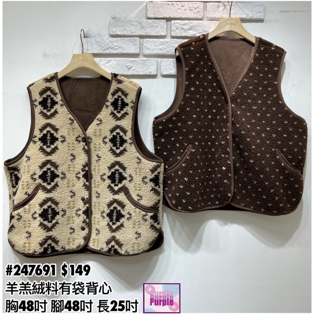 (訂貨大約20天) #247691 羊羔絨料有袋背心外套 (胸48吋 腳48吋 長25吋)