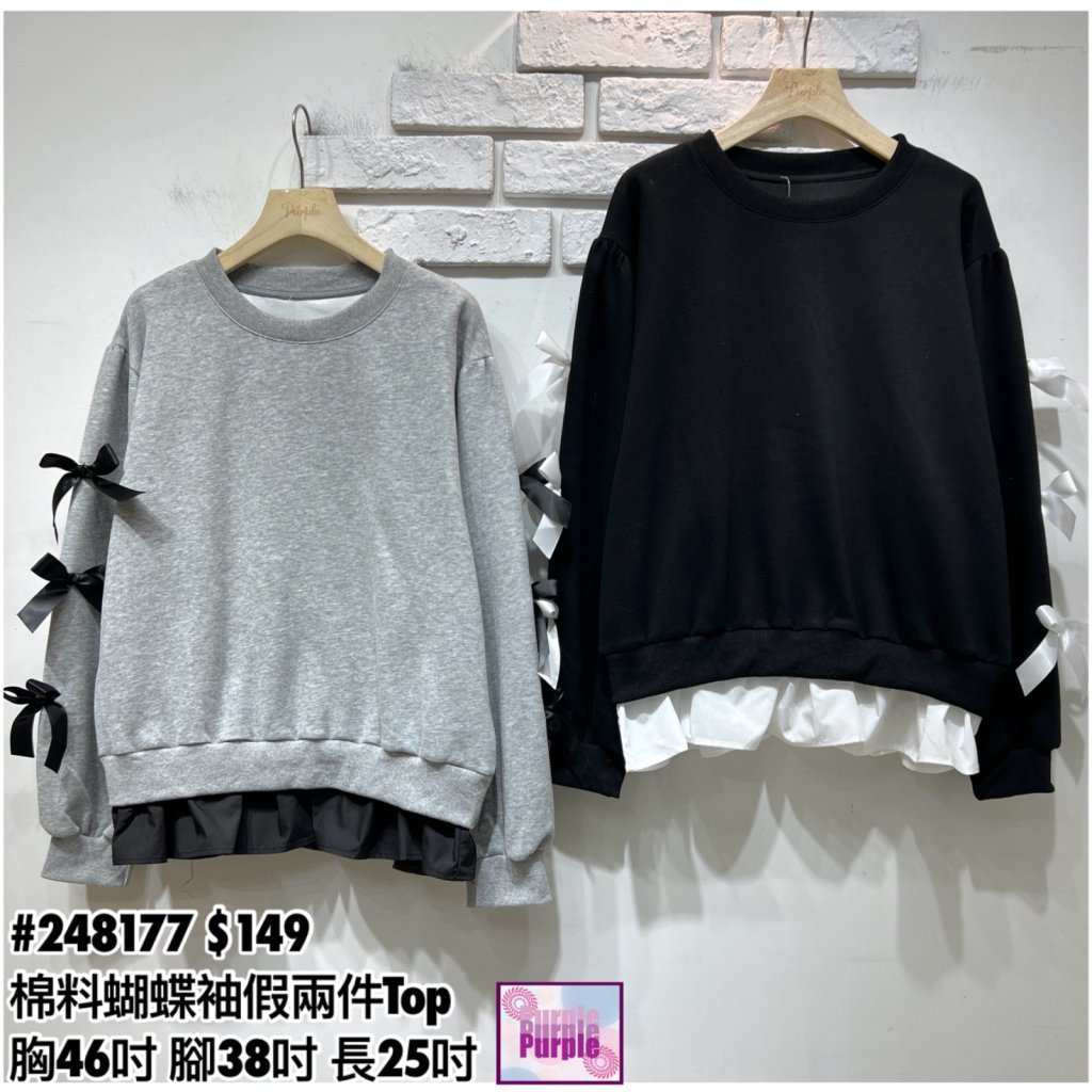 (訂貨大約20天) #248177 棉料拼蝴蝶袖假兩件Top (胸46吋 腳38吋 長25吋)