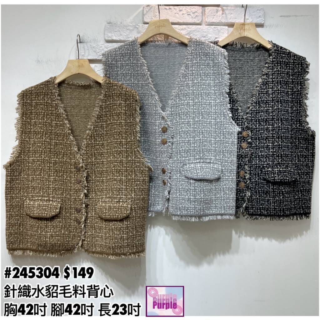 (訂貨大約20天) #245304 針織水貂毛料背心外套 (胸42吋 腳42吋 長23吋)