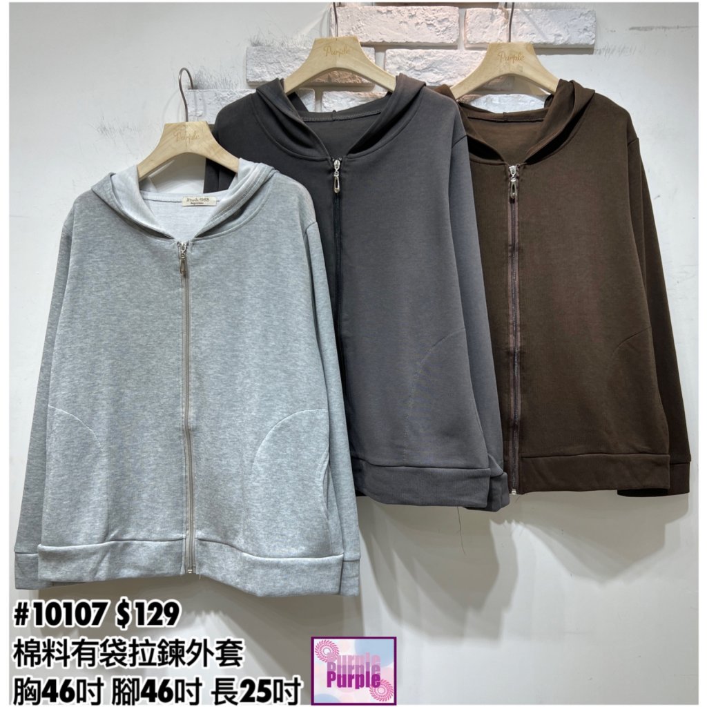 (現貨) #10107 棉料有袋拉鍊外套 (胸46吋 腳46吋 長25吋)