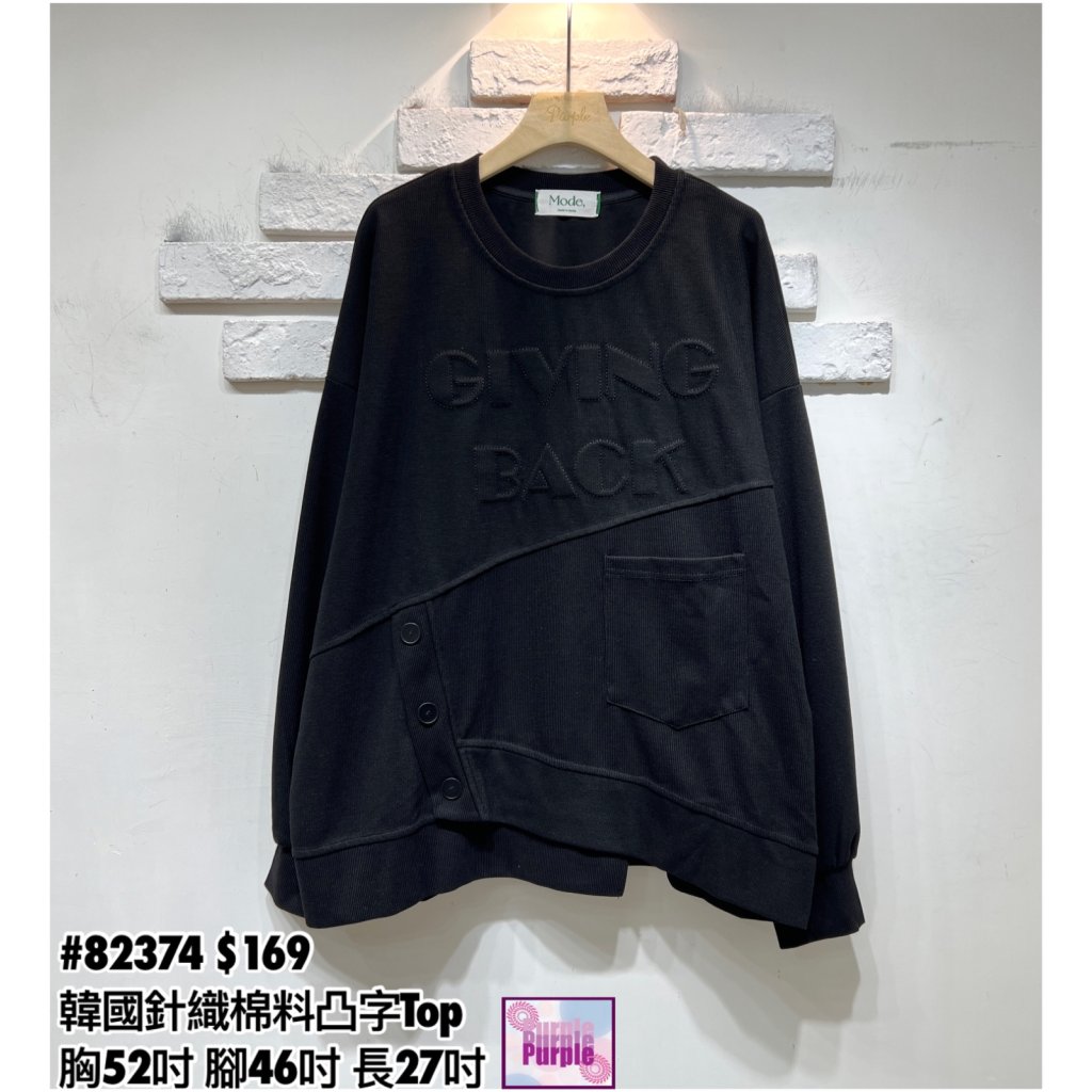 (訂貨大約20天) #82374 韓國針織棉料繡凸字Top (胸52吋 腳46吋 長27吋)