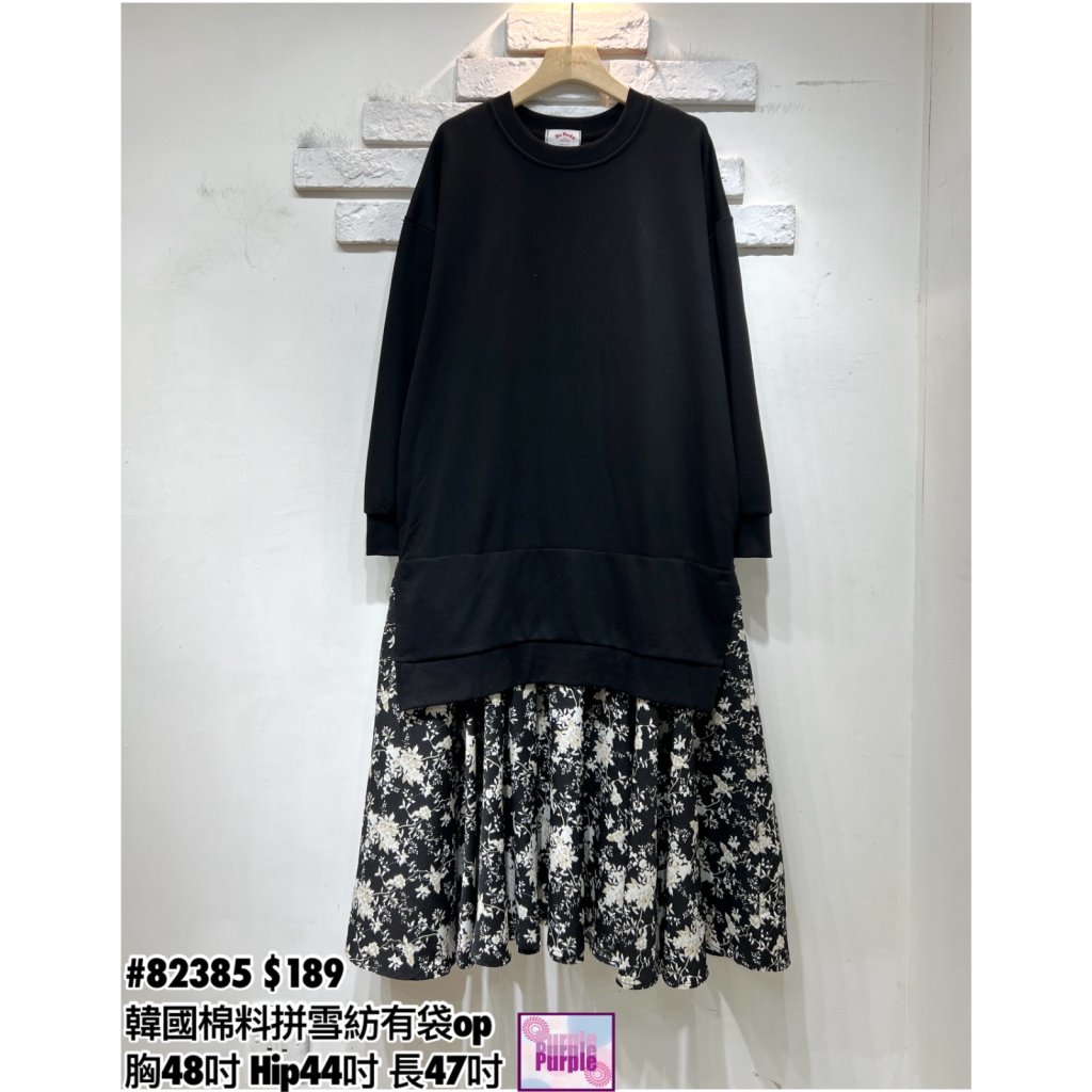 (訂貨大約20天) #82385 韓國棉料拼雪紡有袋連身裙 (胸48吋 Hip44吋 長47吋)