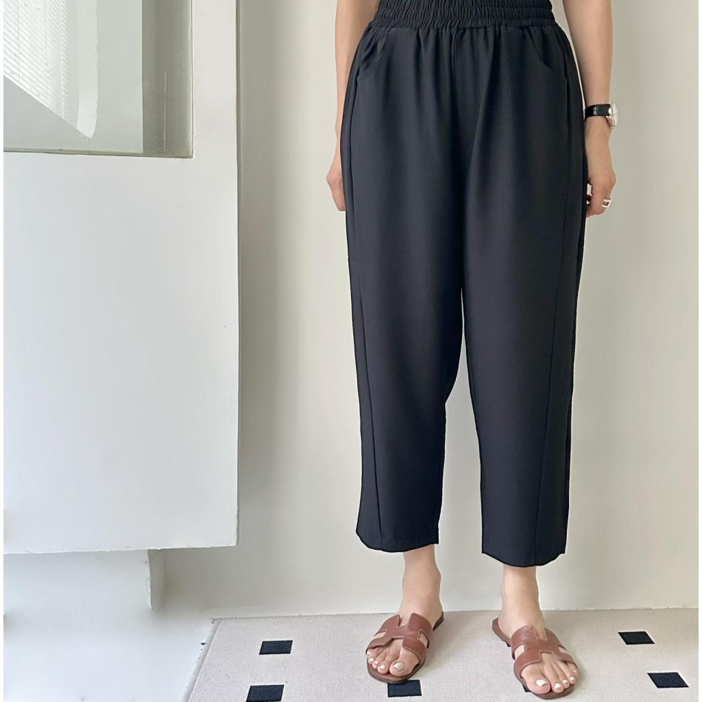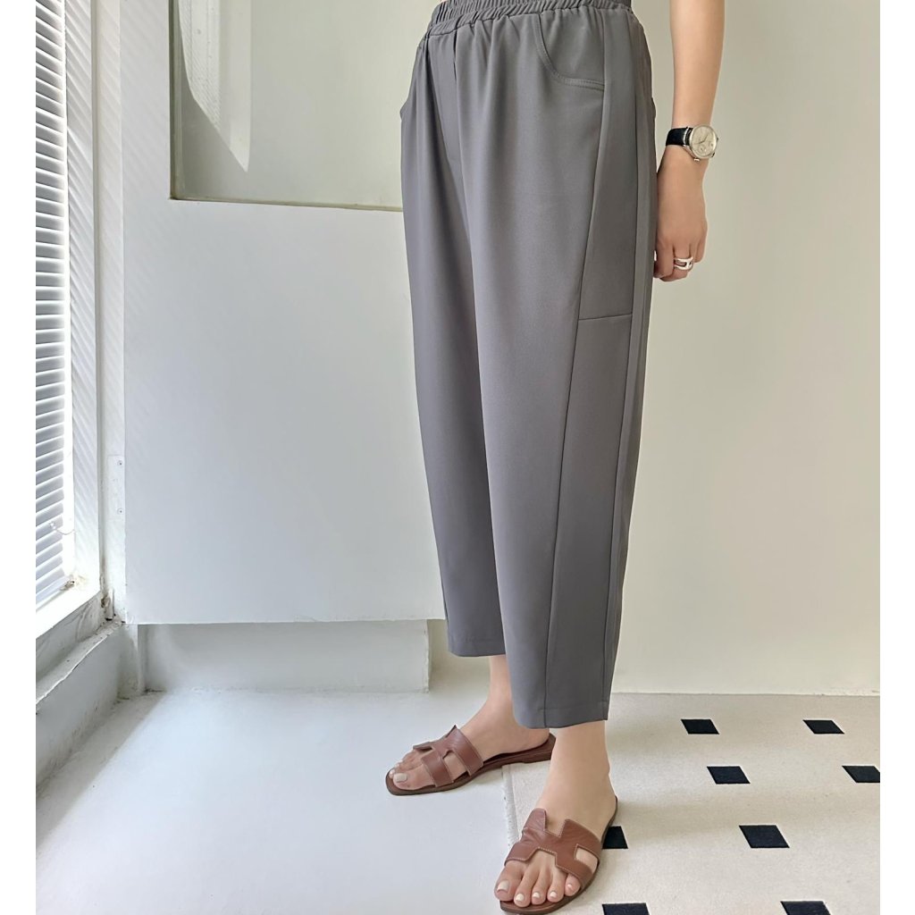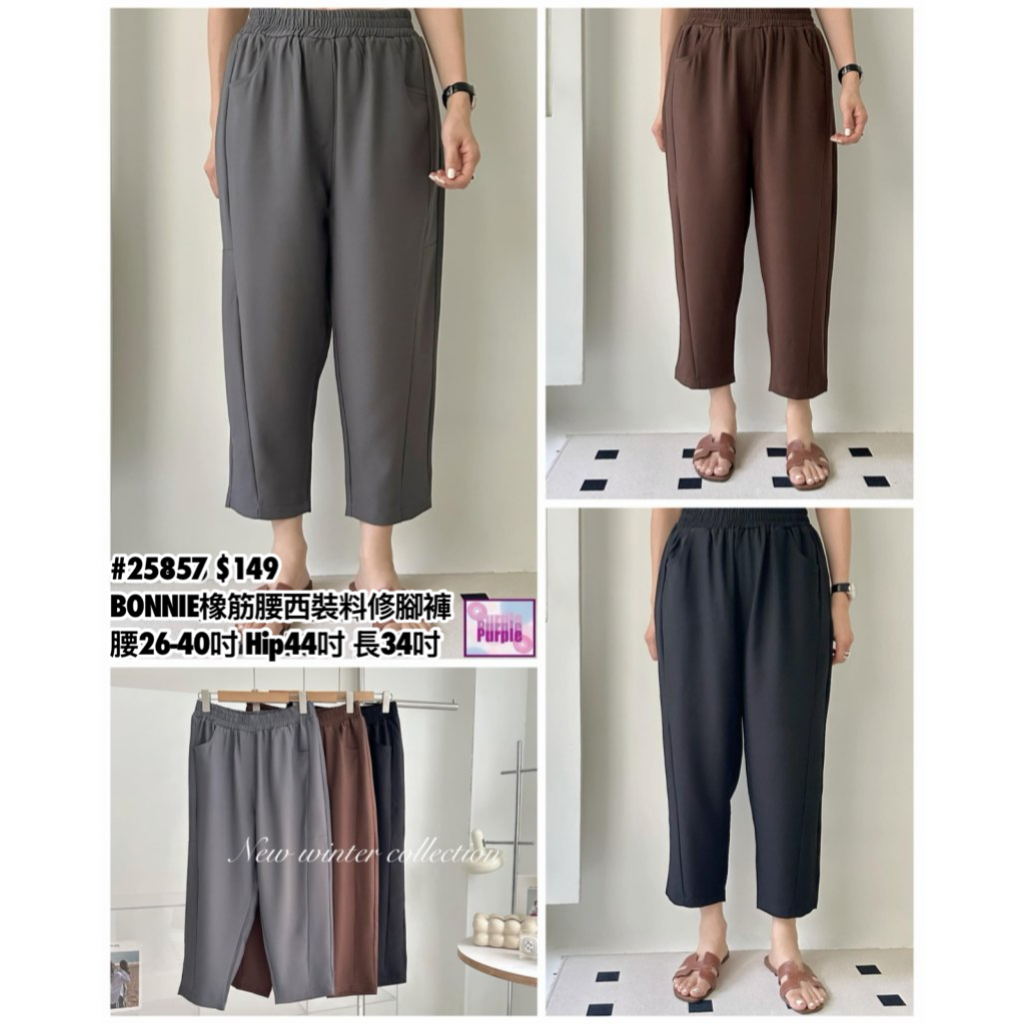 主頁 (現貨) #25857 BONNIE橡筋腰西裝料修腳褲 (腰26-40吋 Hip44吋 長34吋)