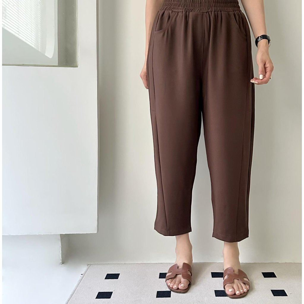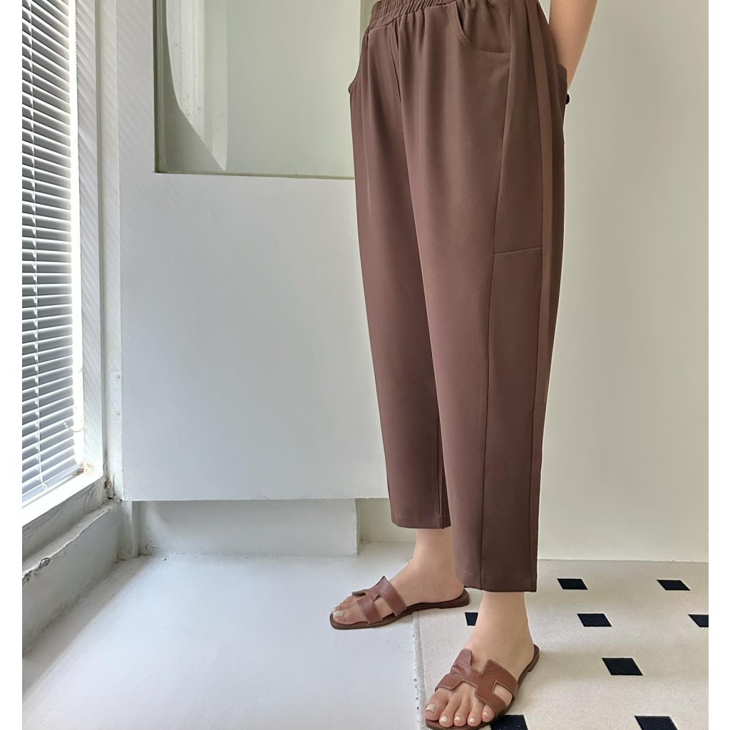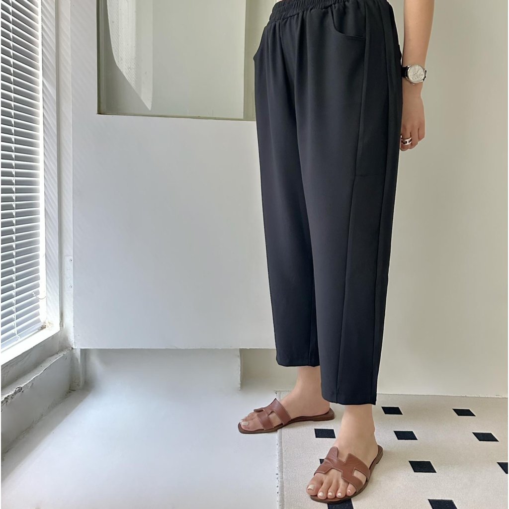 主頁 (現貨) #25857 BONNIE橡筋腰西裝料修腳褲 (腰26-40吋 Hip44吋 長34吋)