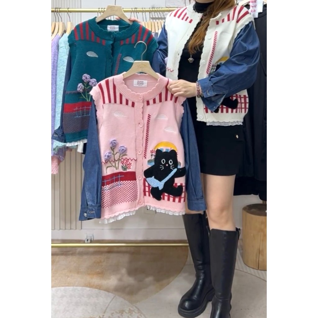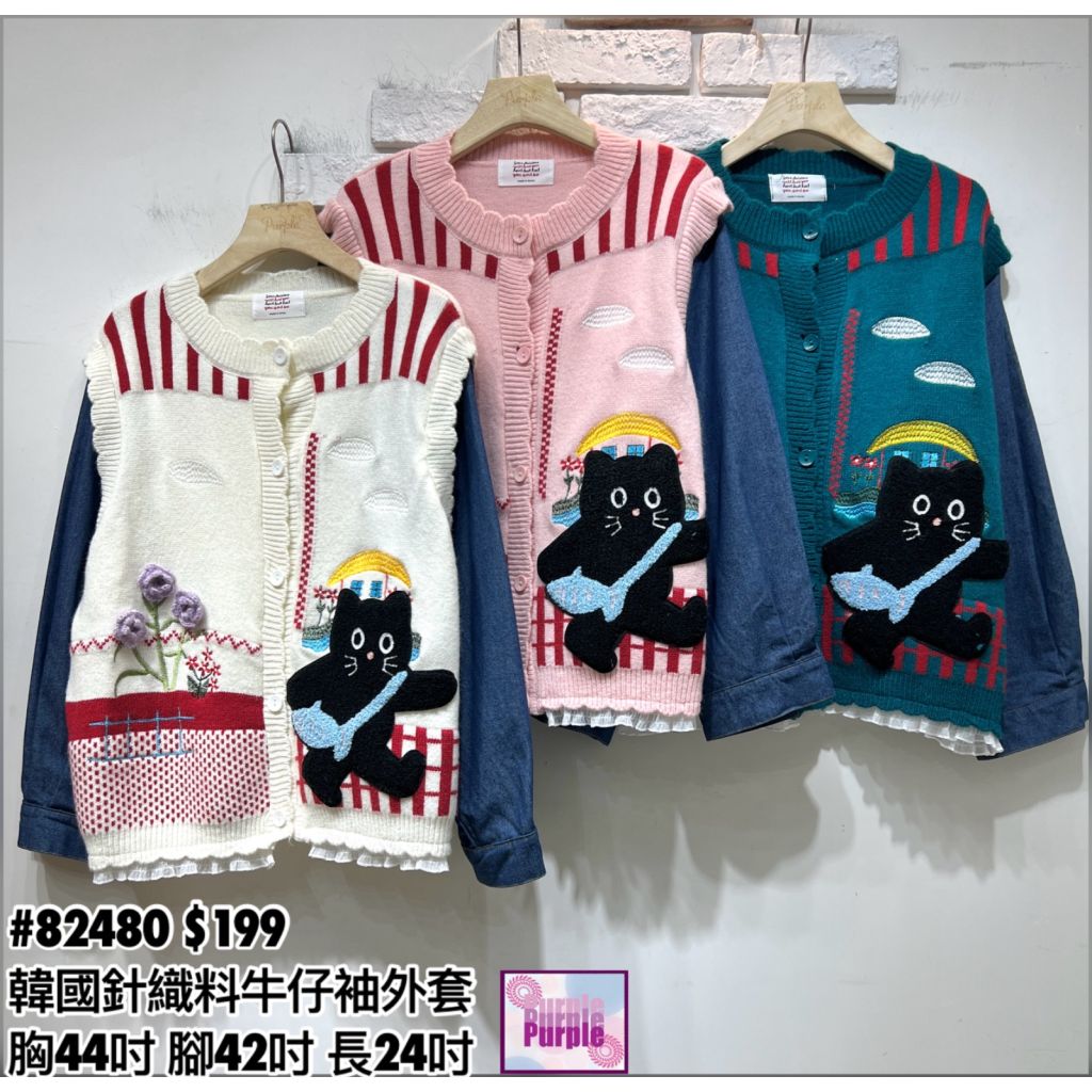 主頁 (訂貨大約20天) #82480 韓國針織料拼牛仔袖喱士腳外套 (胸44吋 腳42吋 長24吋)