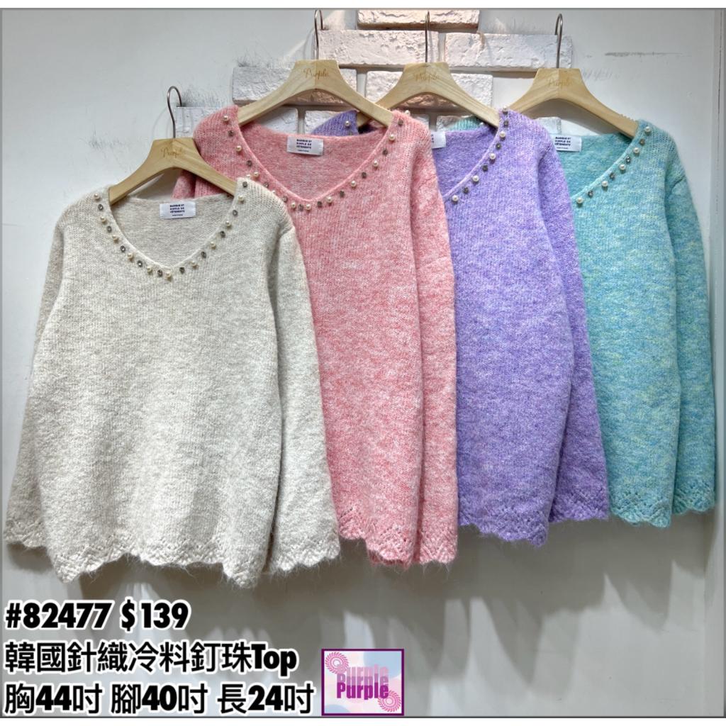 (訂貨大約20天) #82477 韓國針織冷料拼釘珠Top (胸44吋 腳40吋 長24吋)