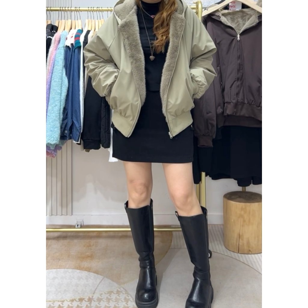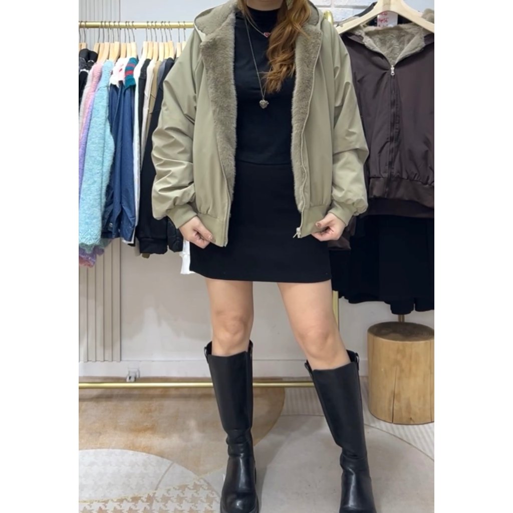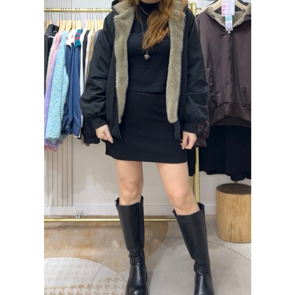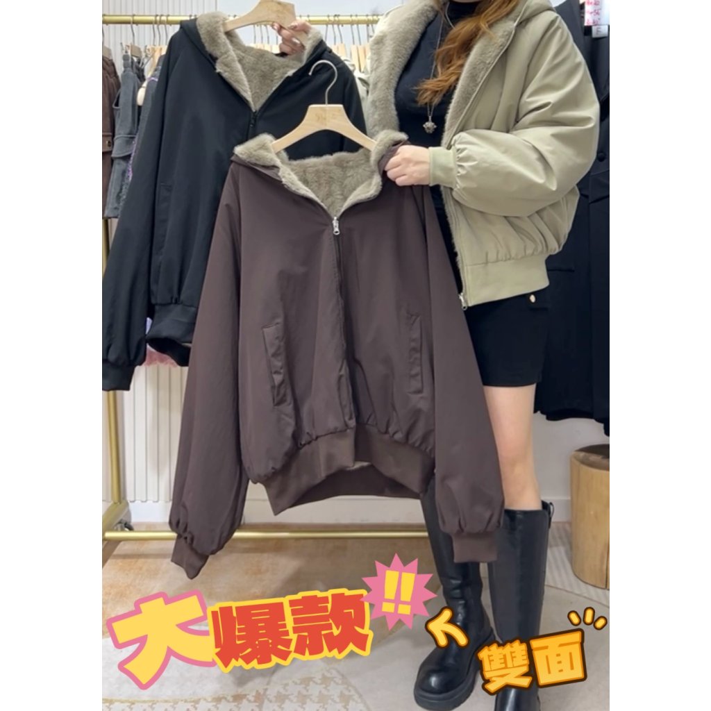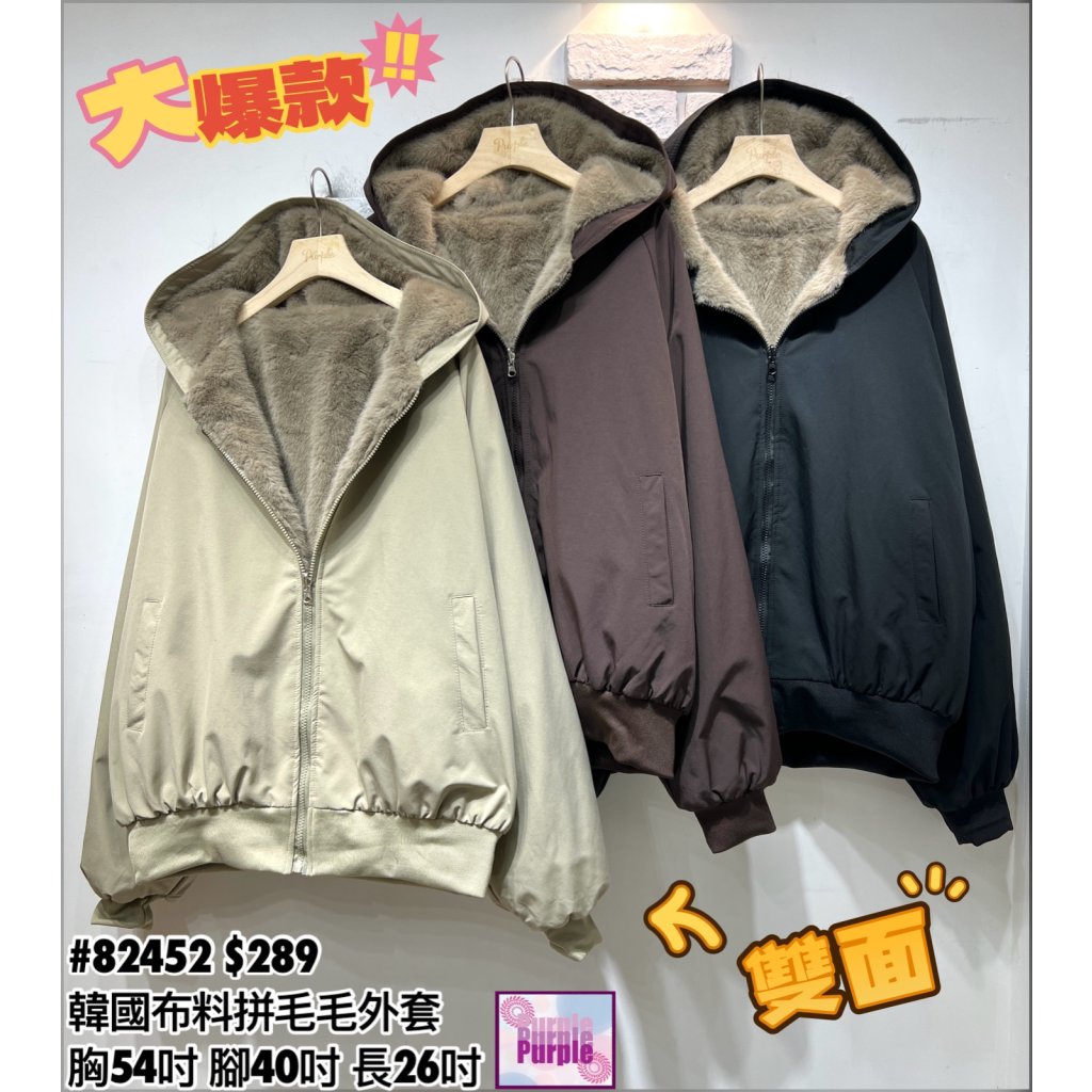 (訂貨大約20天) #82452 韓國布料拼毛毛雙面有袋外套 (胸54吋 腳40吋 長26吋)