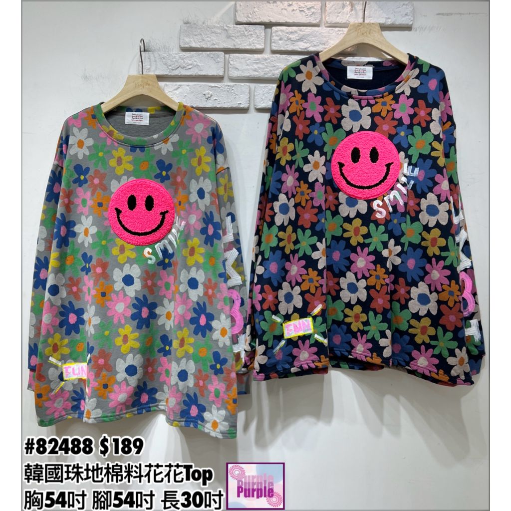 (現貨) #82488 韓國珠地棉料花花Top (胸54吋 腳54吋 長30吋)