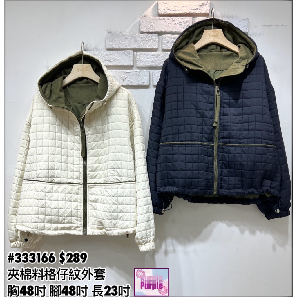 主頁 (現貨) #333166 夾棉料格仔紋拉鍊有袋外套 (胸48吋 腳48吋 長23吋)