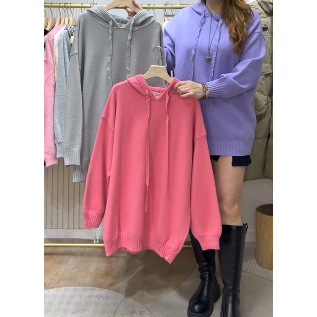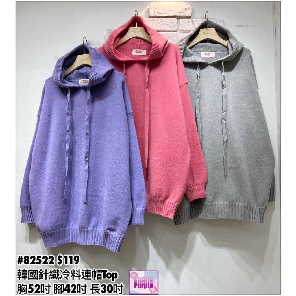 主頁 (現貨) #82522 韓國針織冷料連帽Top (胸52吋 腳42吋 長30吋)