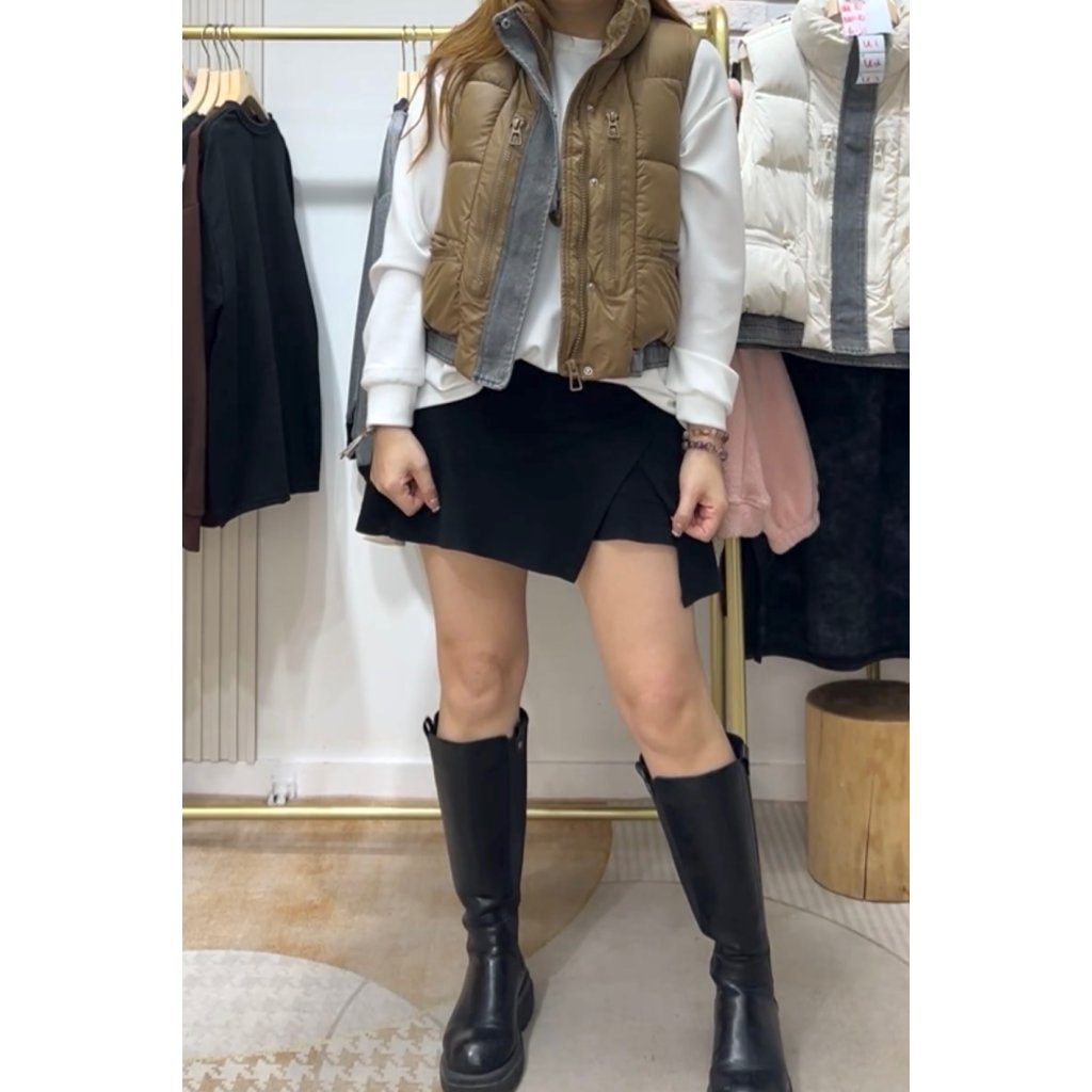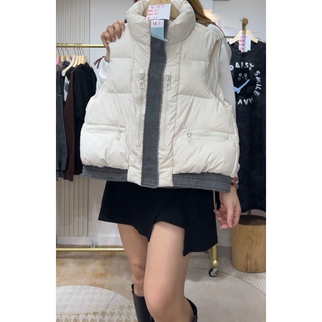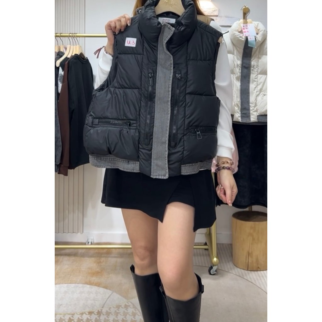 (現貨) #82501 韓國🇰🇷跣水料拼牛仔夾棉背心外套 (胸42吋 腳42吋 長21吋)