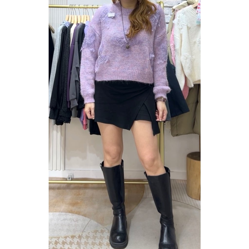 (現貨) #82529 韓國🇰🇷針織冷料拼蝴蝶釘珠Top (胸52吋 腳40吋 長21吋)