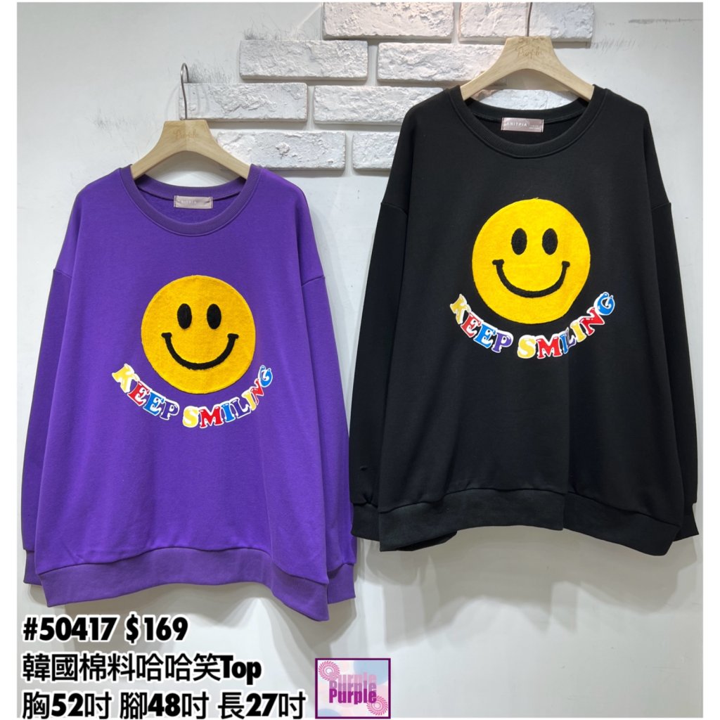 主頁 (現貨) #50417 韓國🇰🇷棉料哈哈笑Top (胸52吋 腳48吋 長27吋)