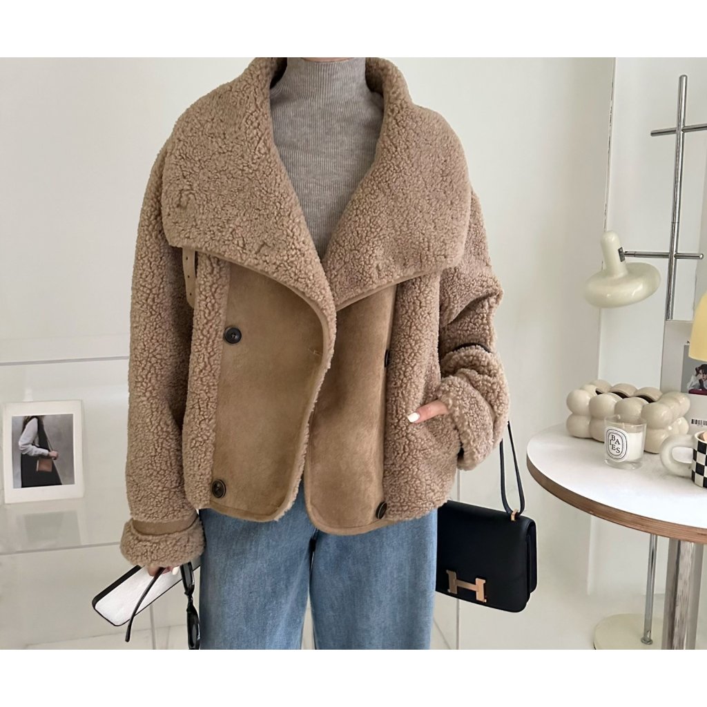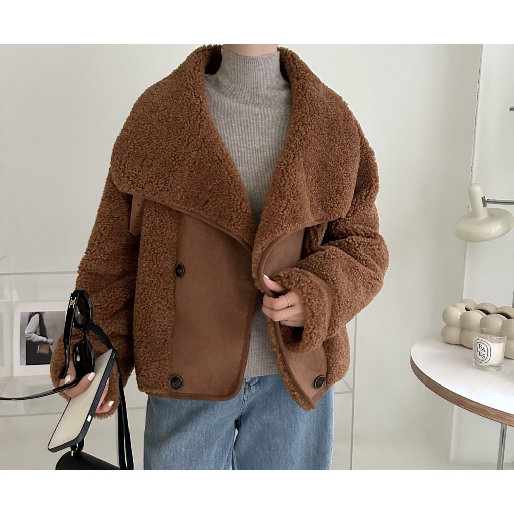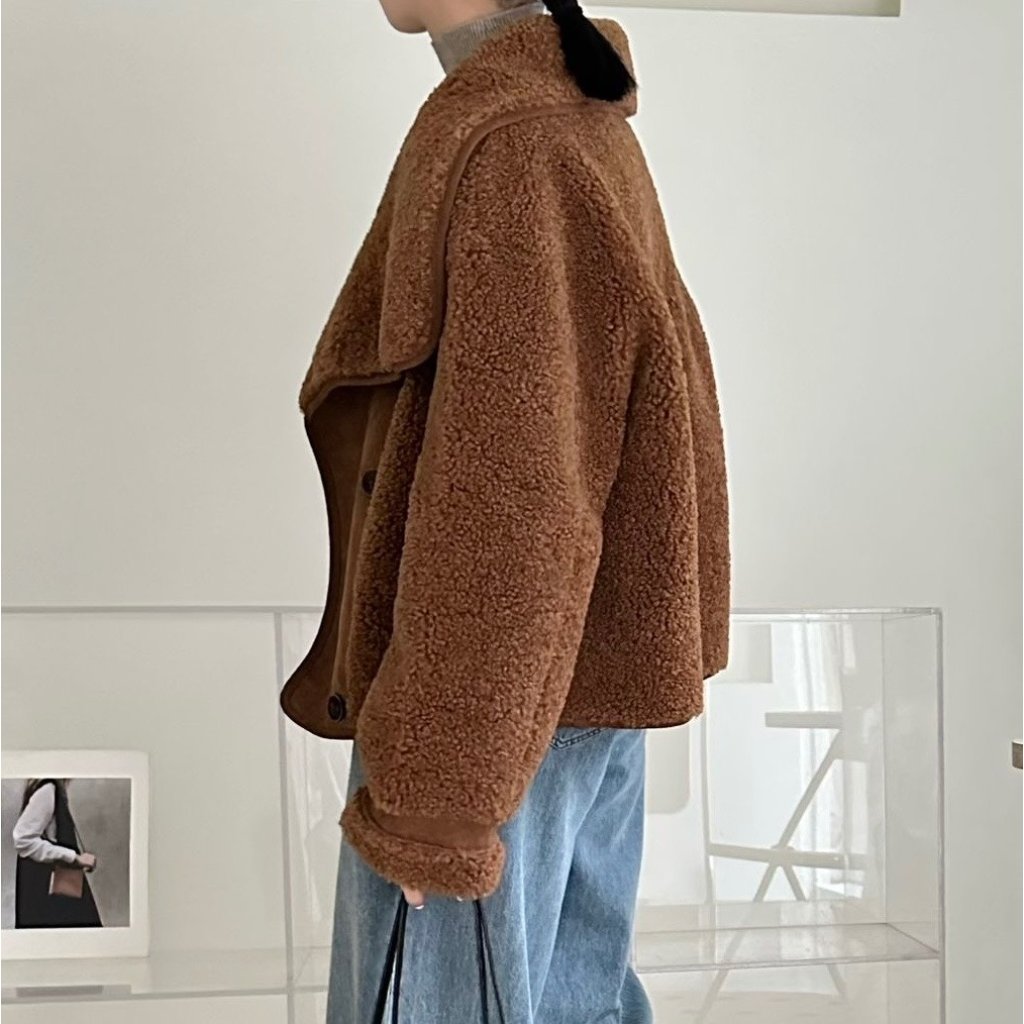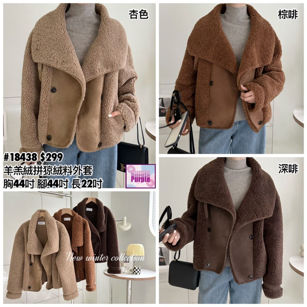 (現貨) #18438 BONNIE羊羔絨拼猄絨料外套 (胸44吋 腳44吋 長22吋)