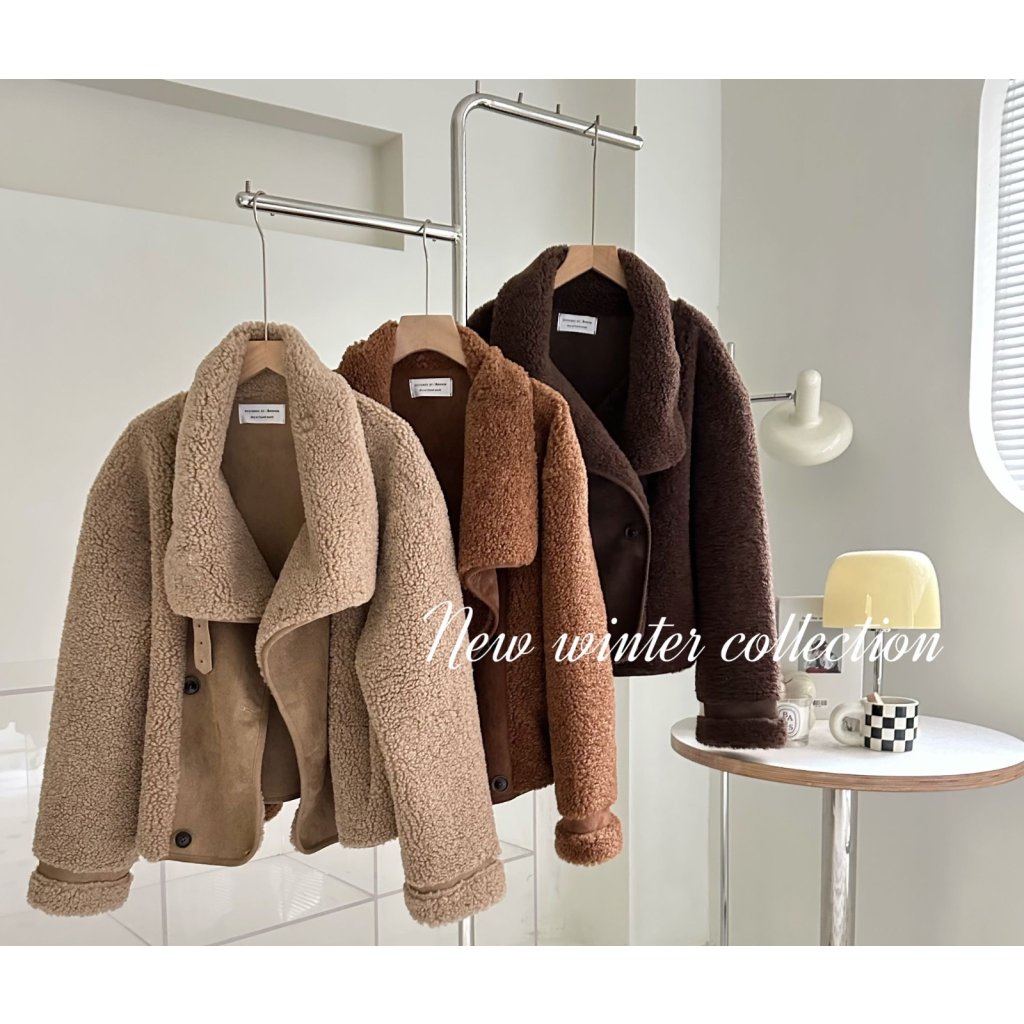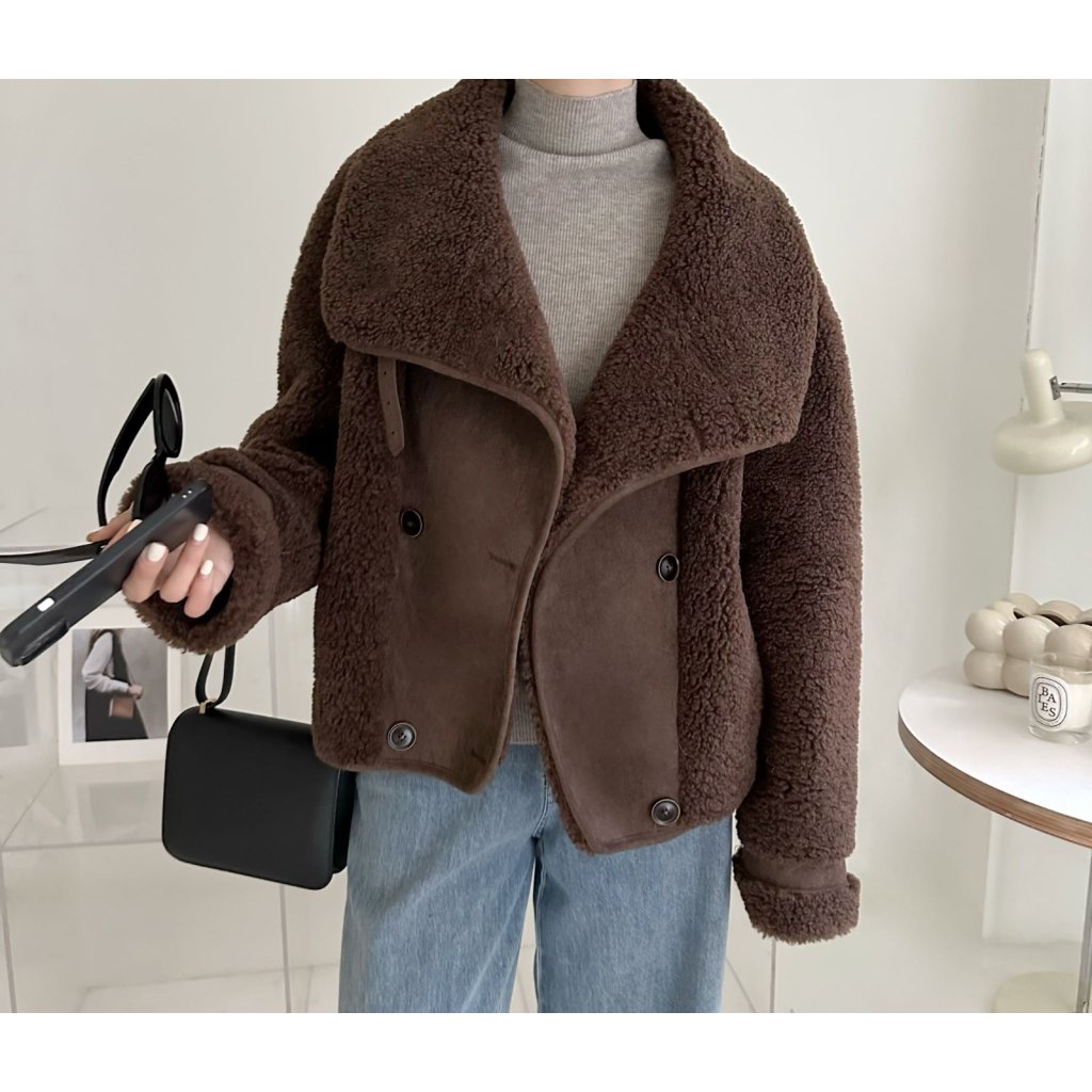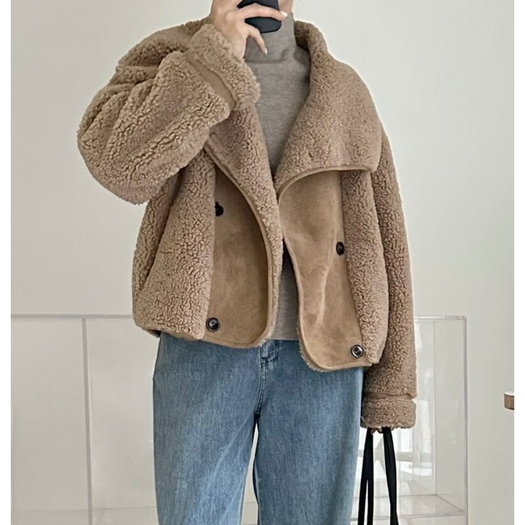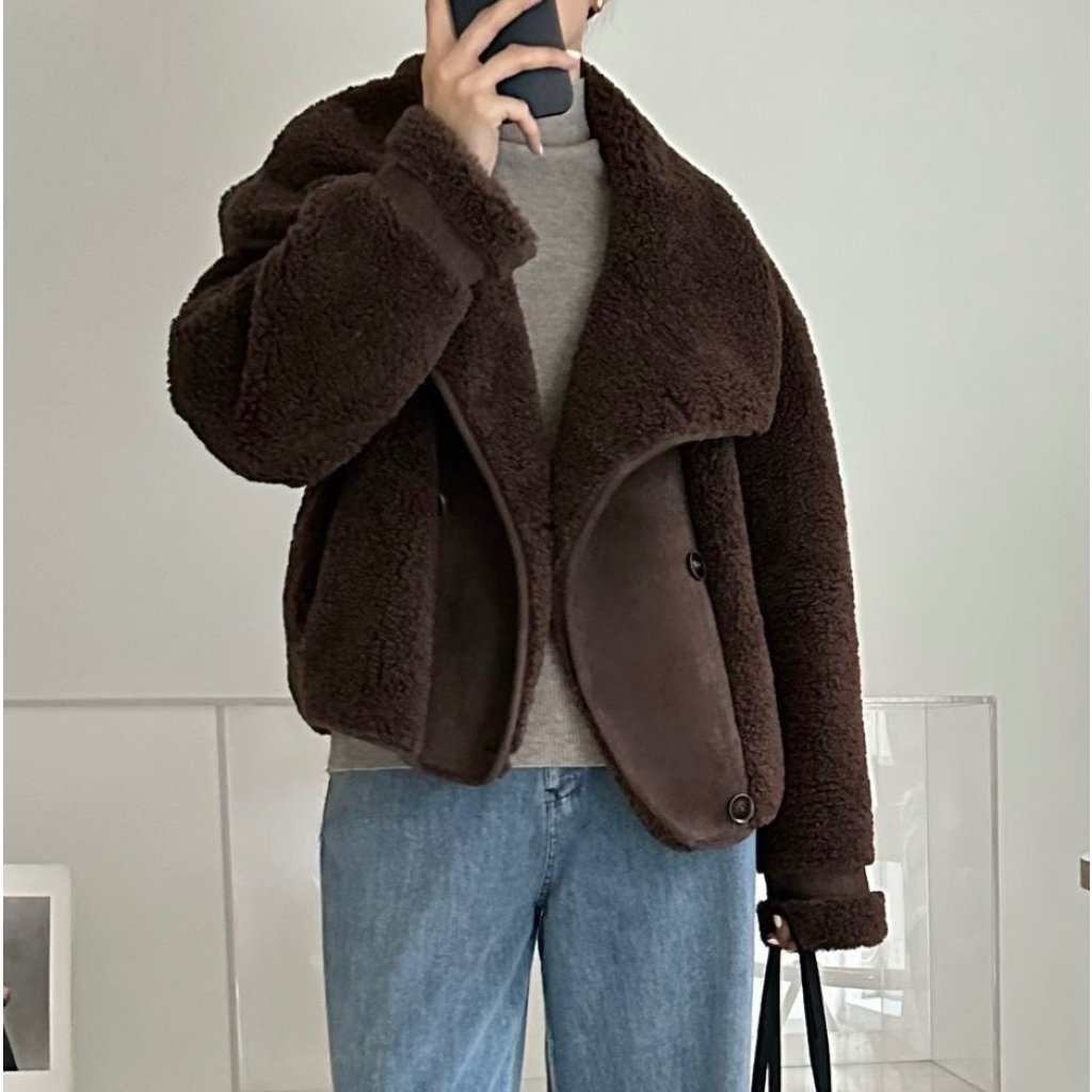 (現貨) #18438 BONNIE羊羔絨拼猄絨料外套 (胸44吋 腳44吋 長22吋)