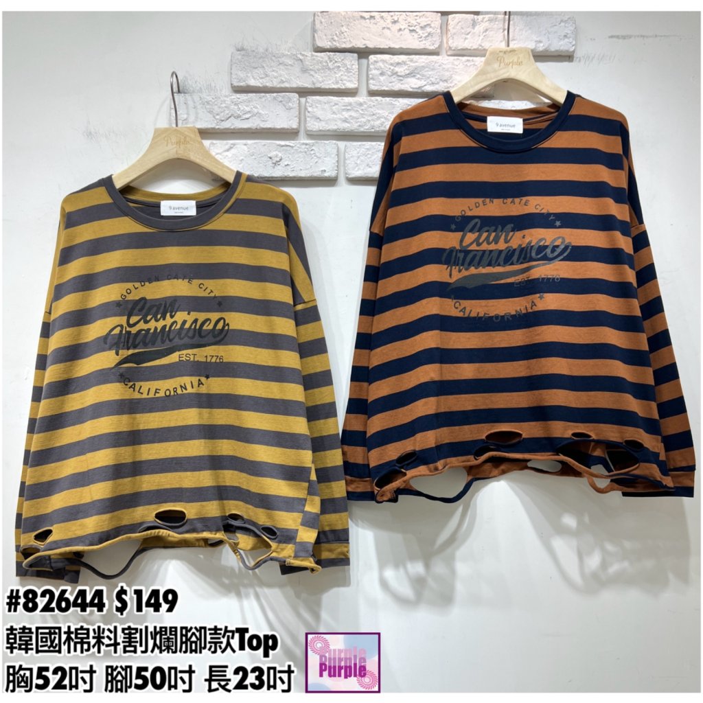 主頁 (現貨) #82644 韓國橫間棉料印字割爛腳款Top (胸52吋 腳50吋 長23吋)