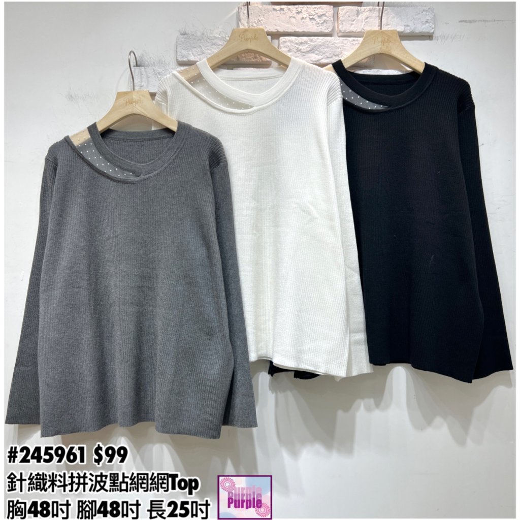 主頁 (現貨) #245961 針織料領拼波點網網Top (胸48吋 腳48吋 長25吋)