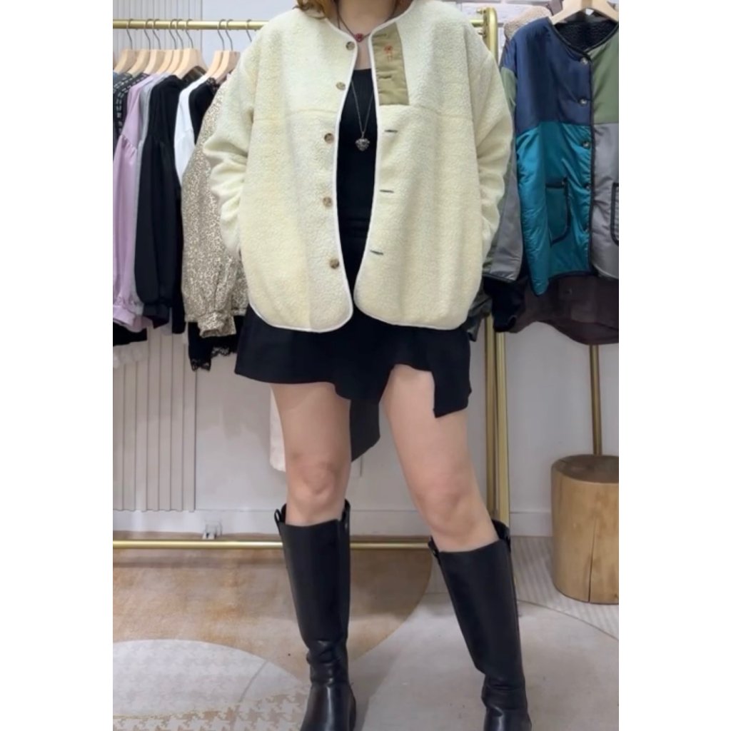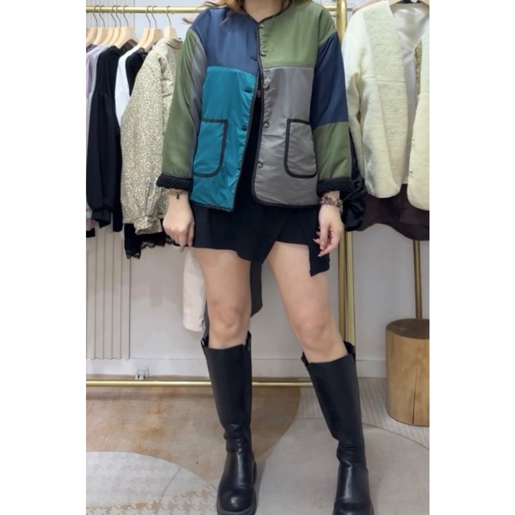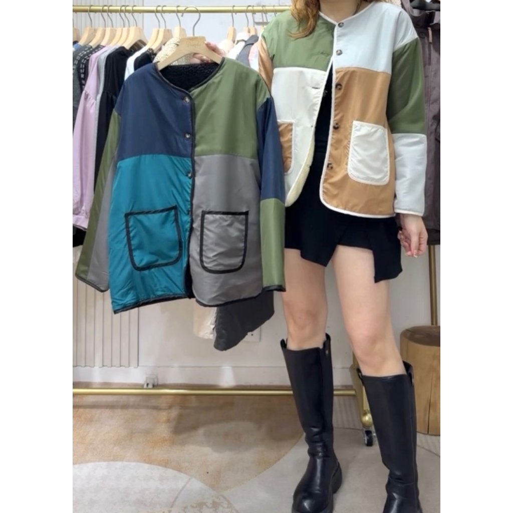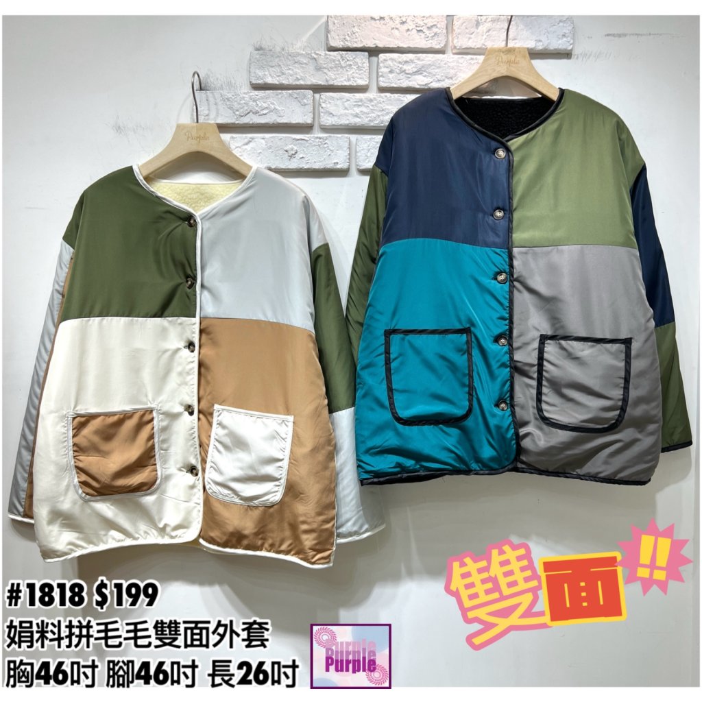 主頁 (現貨) #1818 娟料拼毛毛雙面外套 (胸46吋 腳46吋 長26吋)