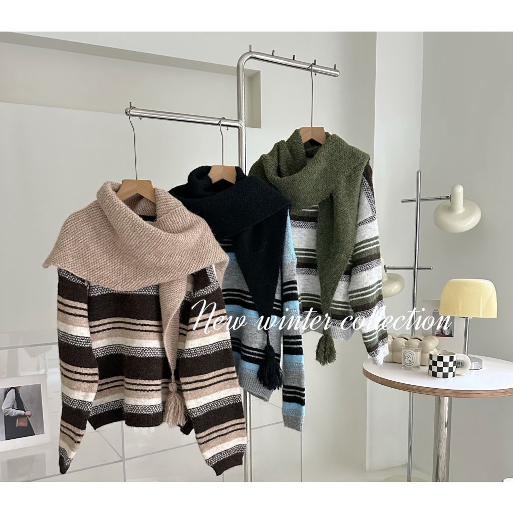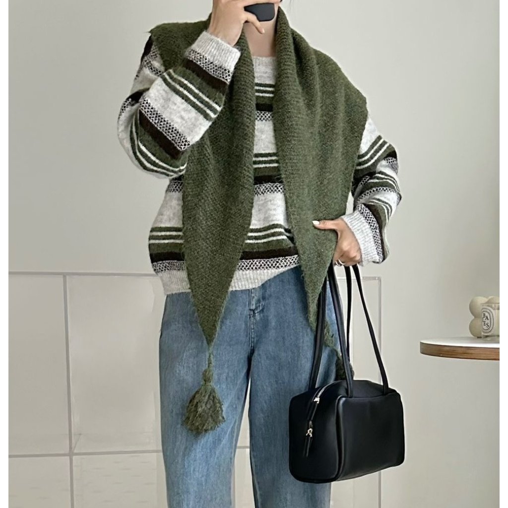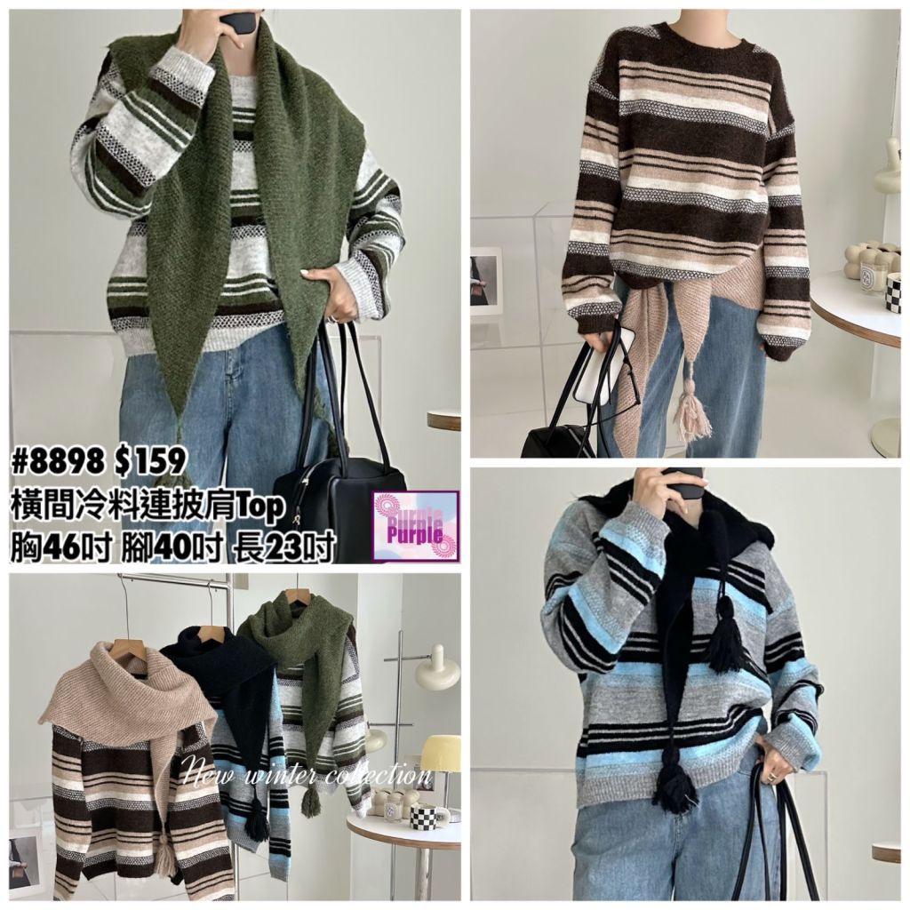 主頁 (現貨) #8898 BONNIE橫間針織冷料連披肩Top (胸46吋 腳40吋 長23吋)