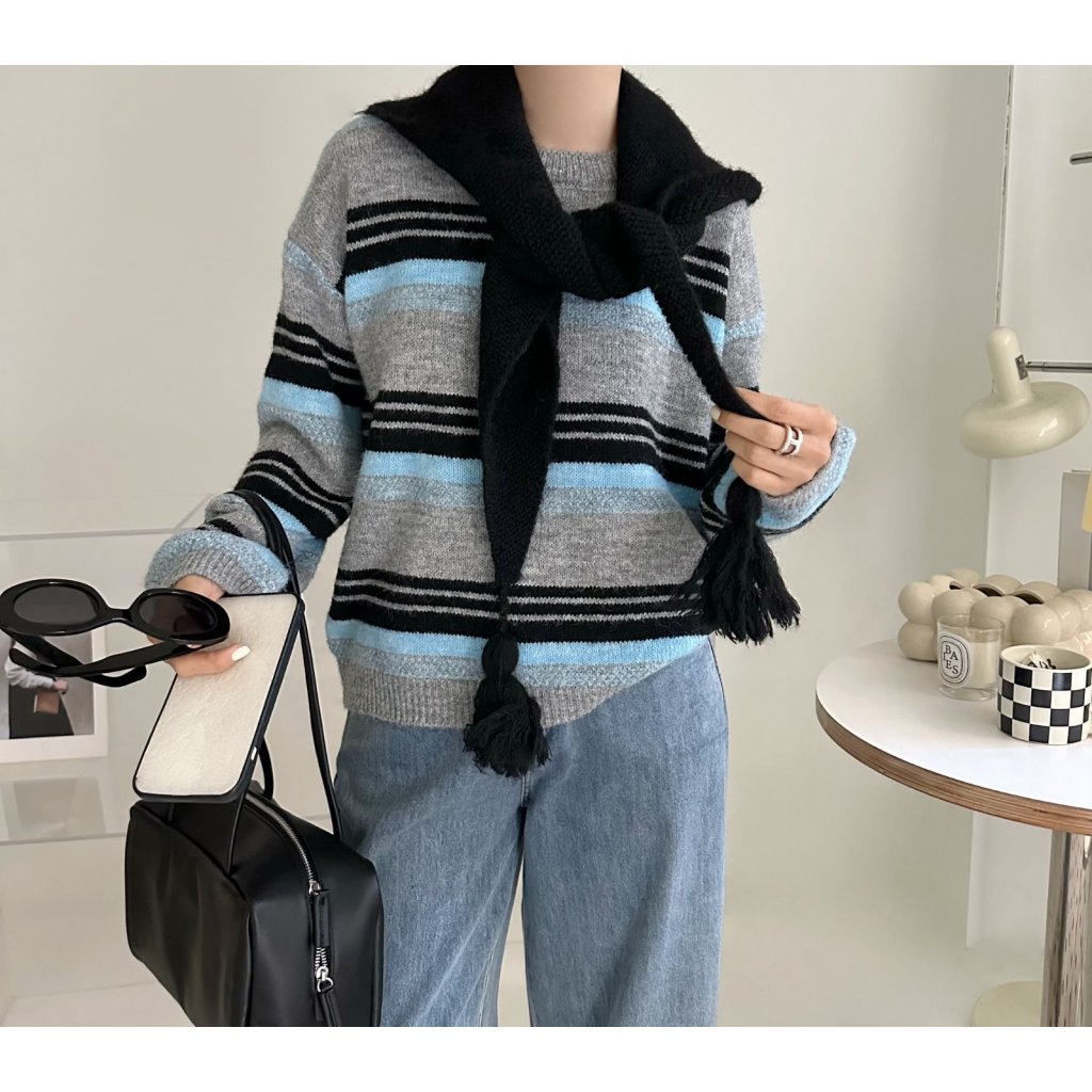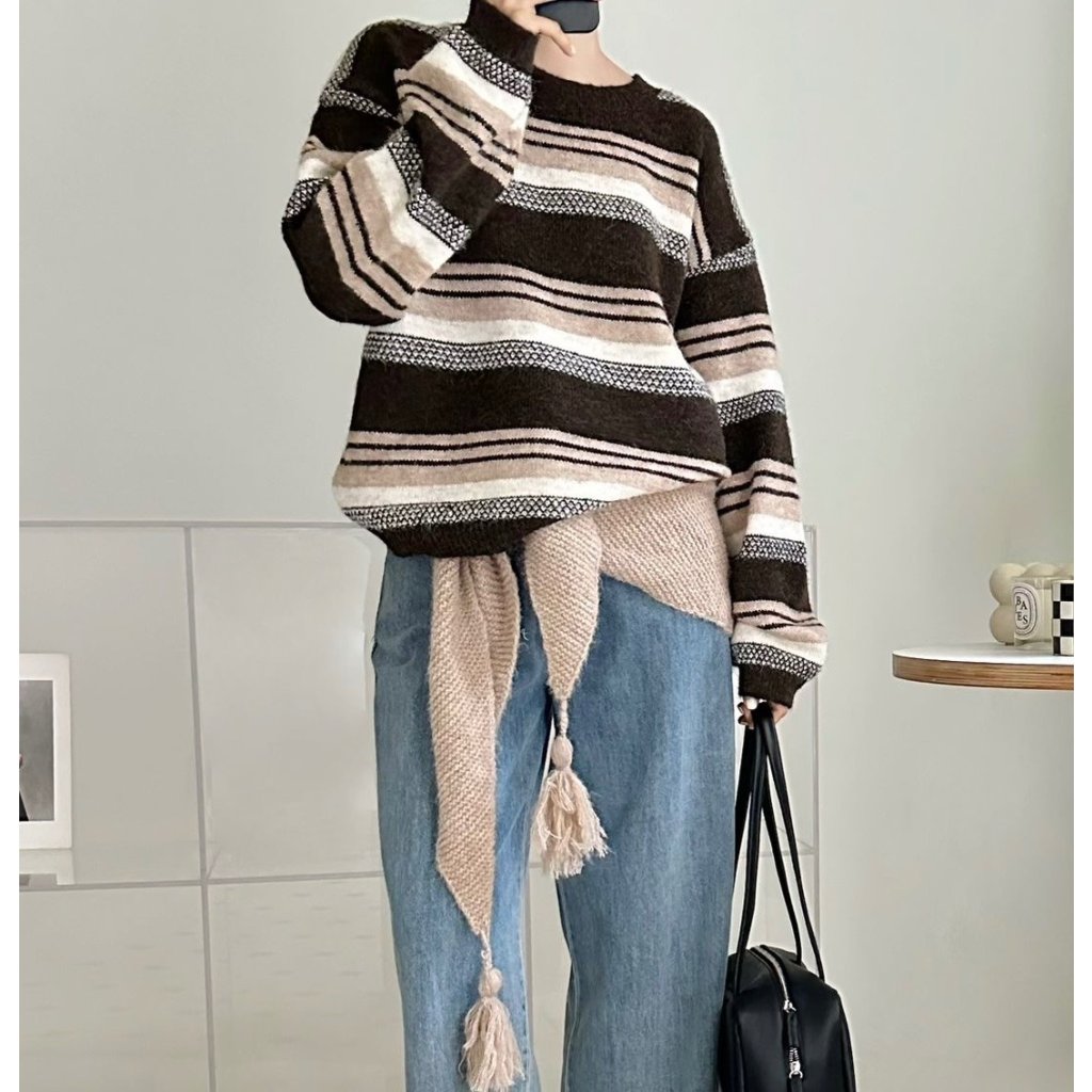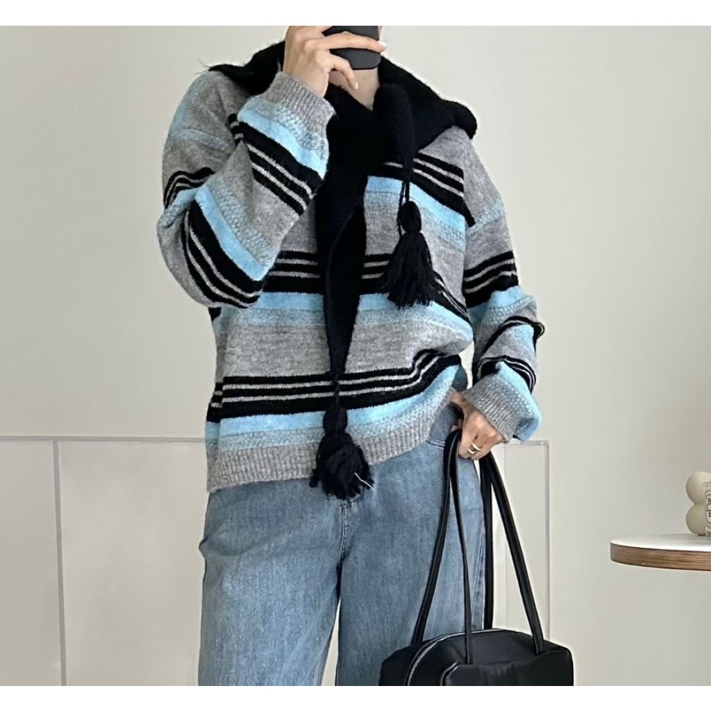 主頁 (現貨) #8898 BONNIE橫間針織冷料連披肩Top (胸46吋 腳40吋 長23吋)
