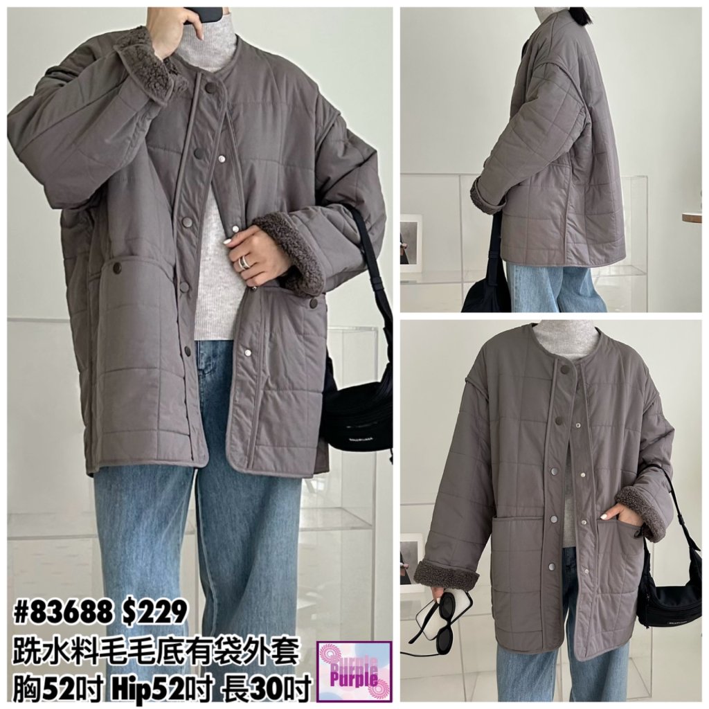 (現貨) #83688 BONNIE跣水料毛毛底有袋外套 (胸52吋 Hip52吋 長30吋)