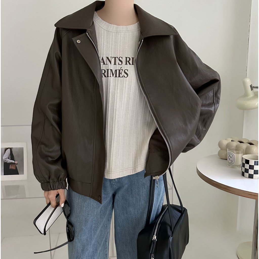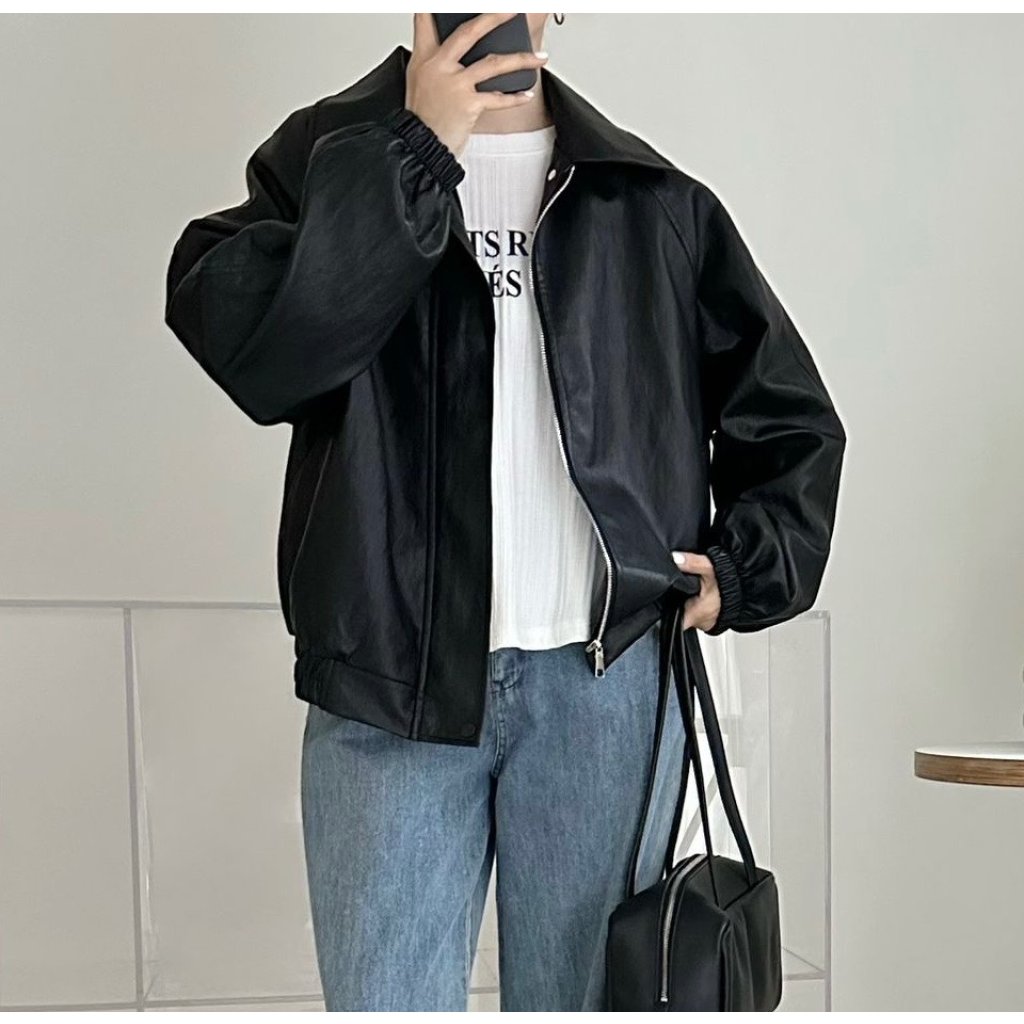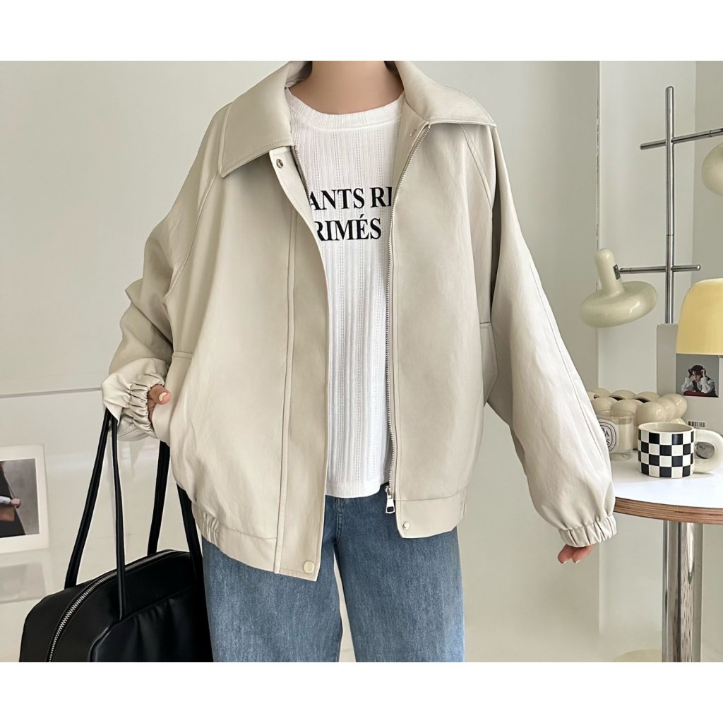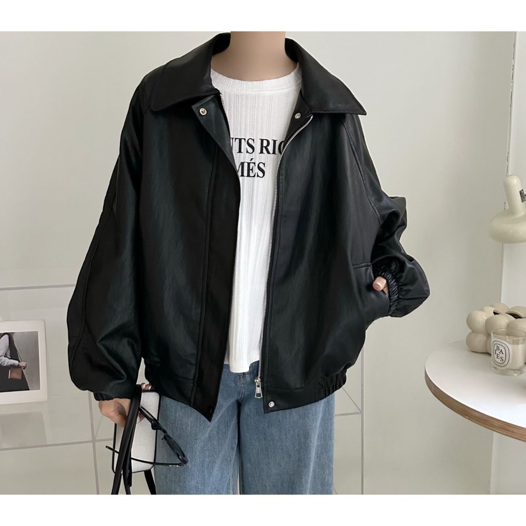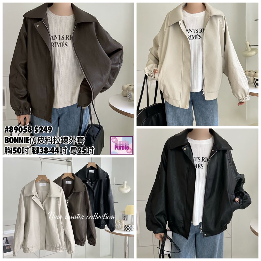 (現貨) #89058 BONNIE仿皮料拉鍊外套 (胸50吋 腳38-44吋 長25吋)