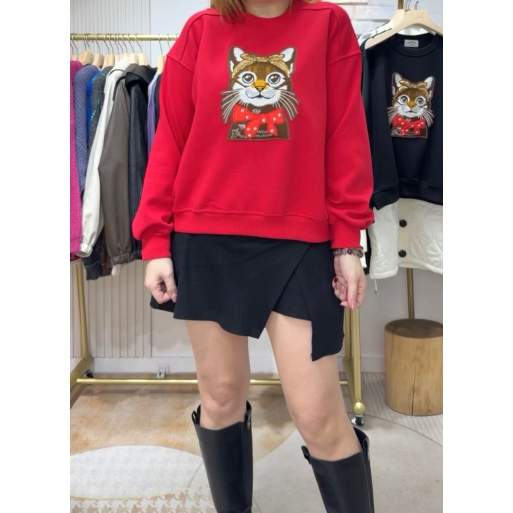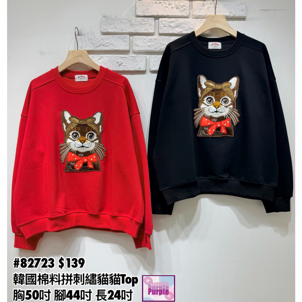 (現貨) #82723 韓國棉料拼刺繡貓貓Top (胸50吋 腳44吋 長24吋)