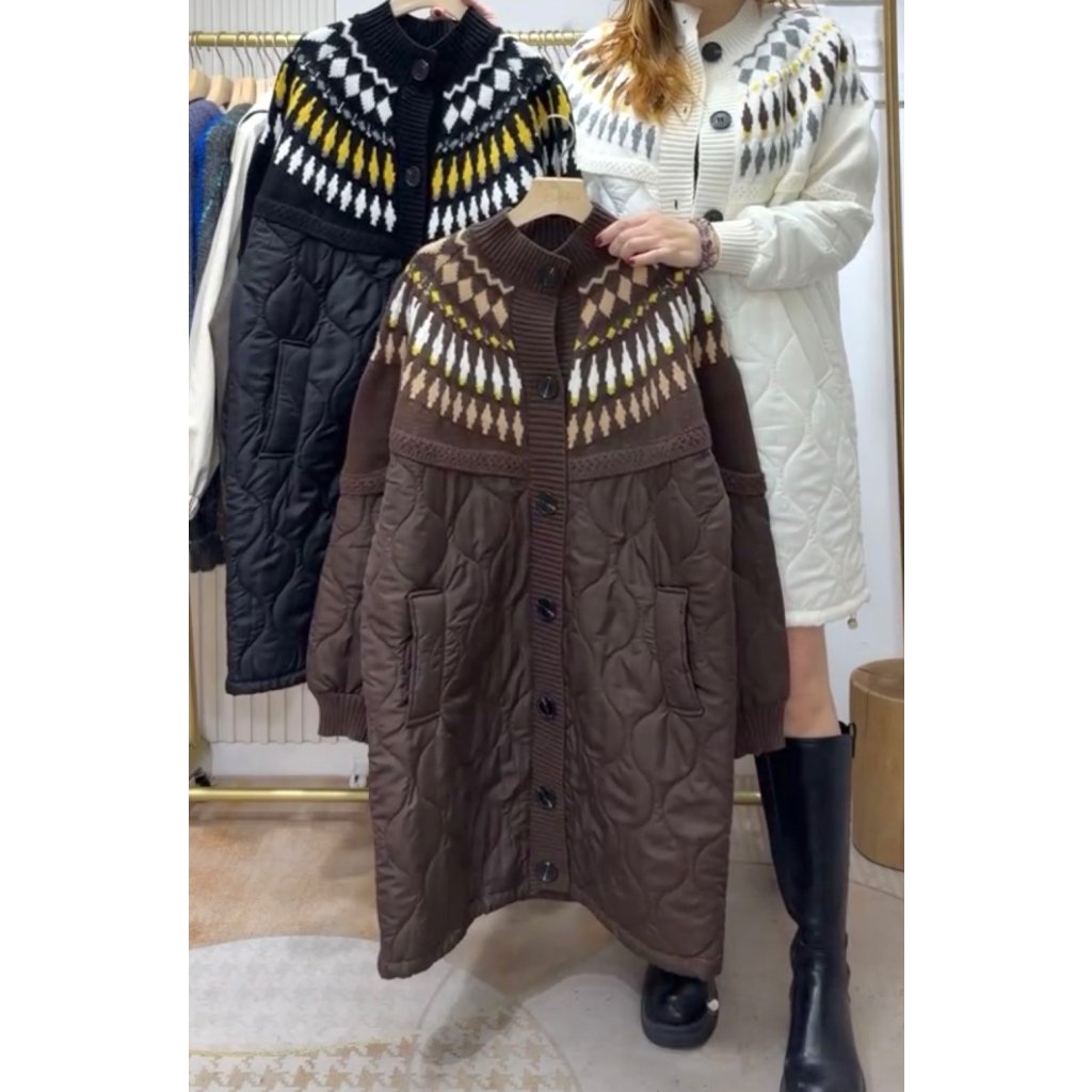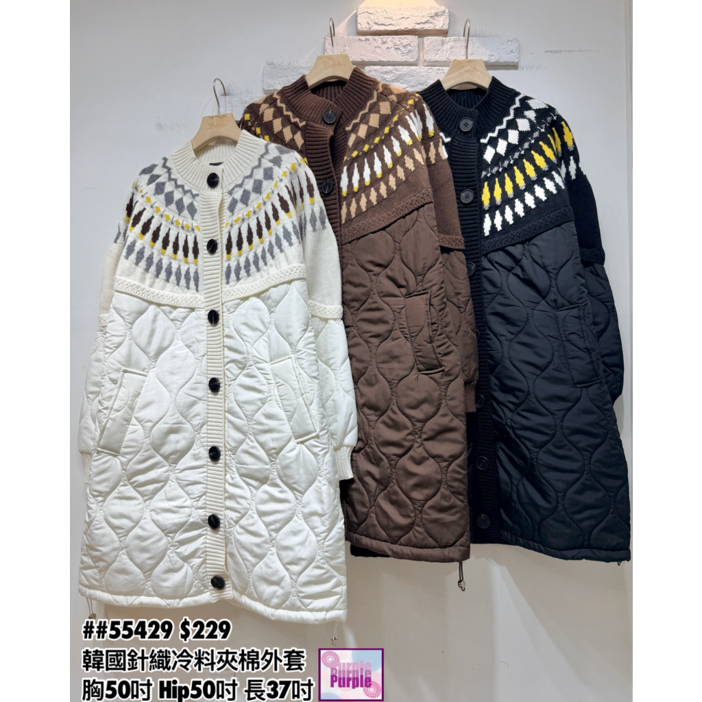 (現貨) #55429 韓國針織冷料拼夾棉長外套 (胸50吋 Hip50吋 長37吋)