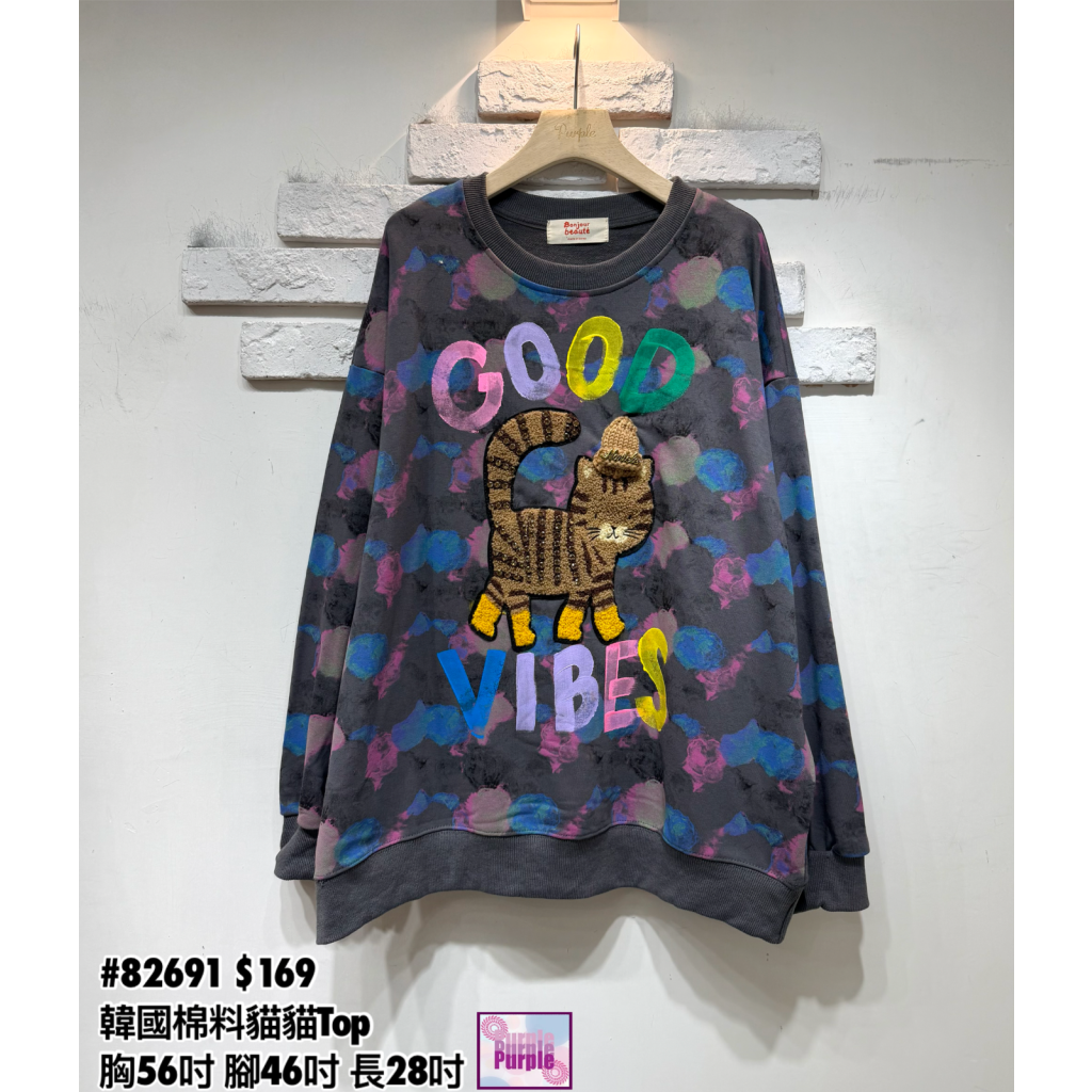 (現貨) #82691 韓國棉料貓貓Top (胸56吋 腳46吋 長28吋)
