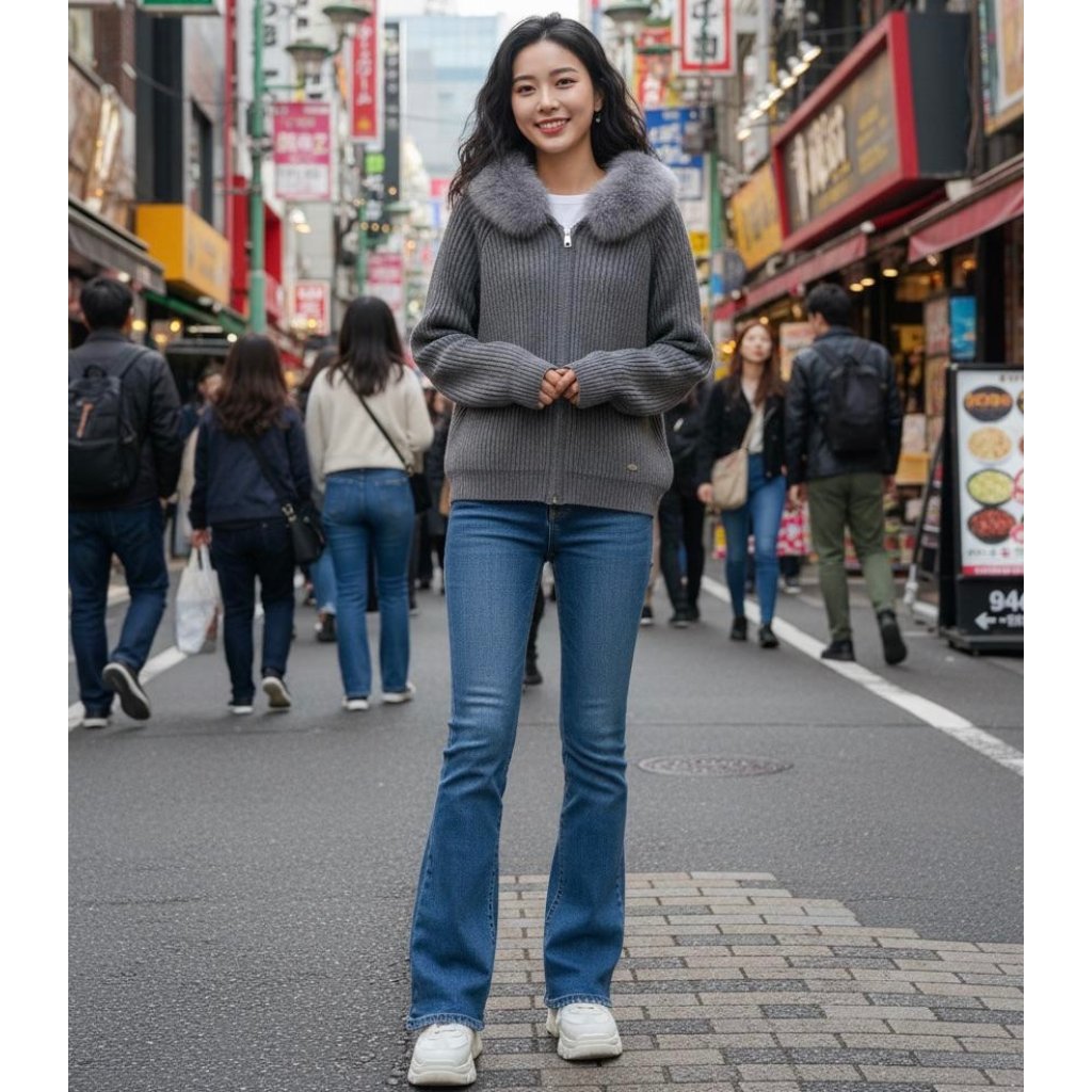 主頁 (訂貨大約20天) #82732 韓國針織坑紋料拼毛毛有帽雙拉錬外套 (胸46吋 腳42吋長22吋)