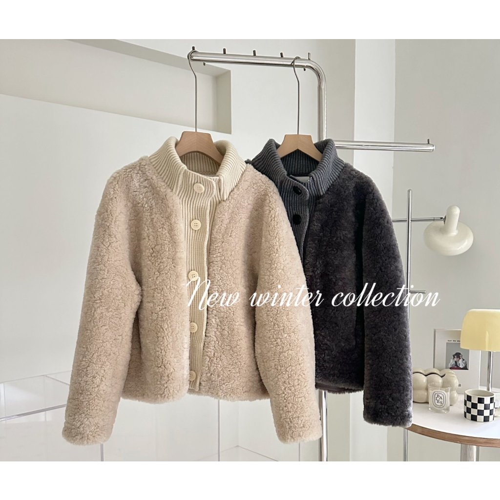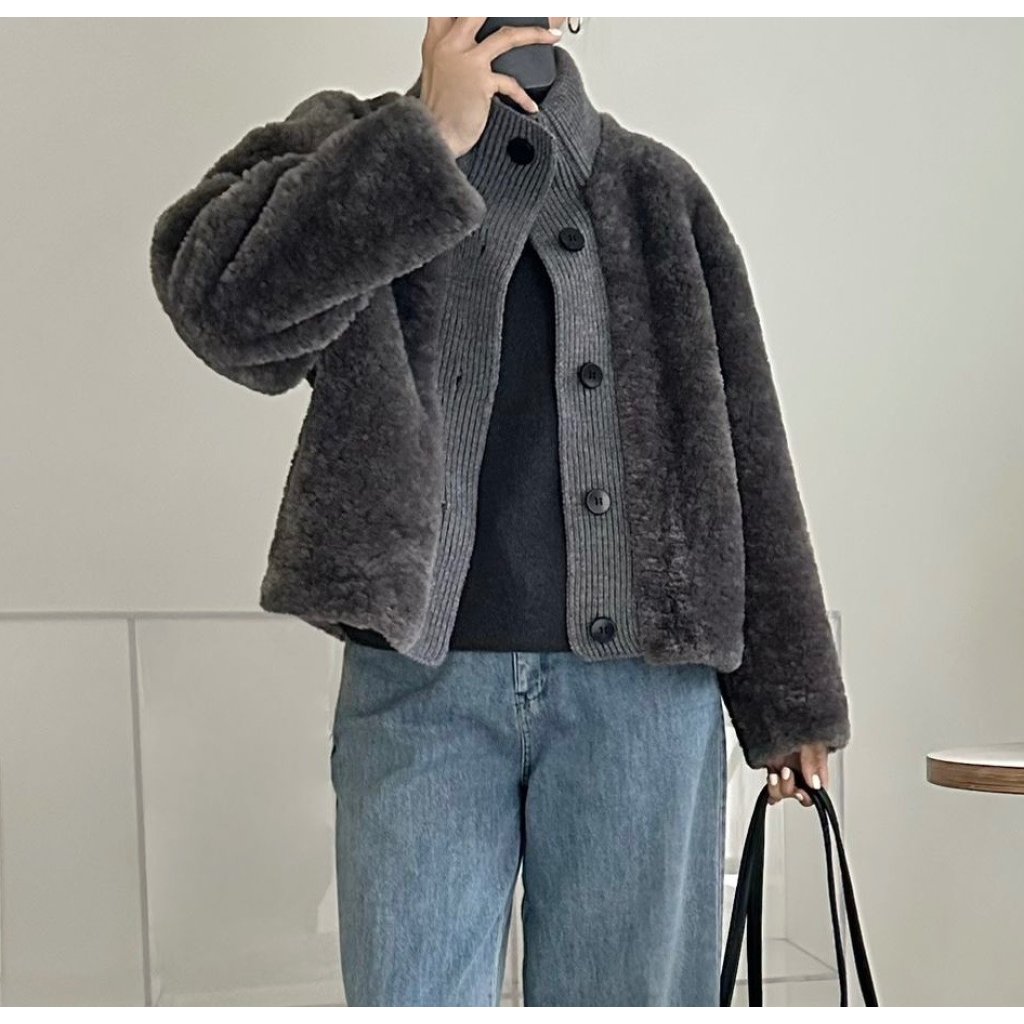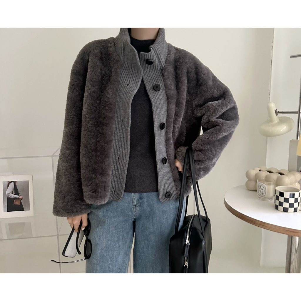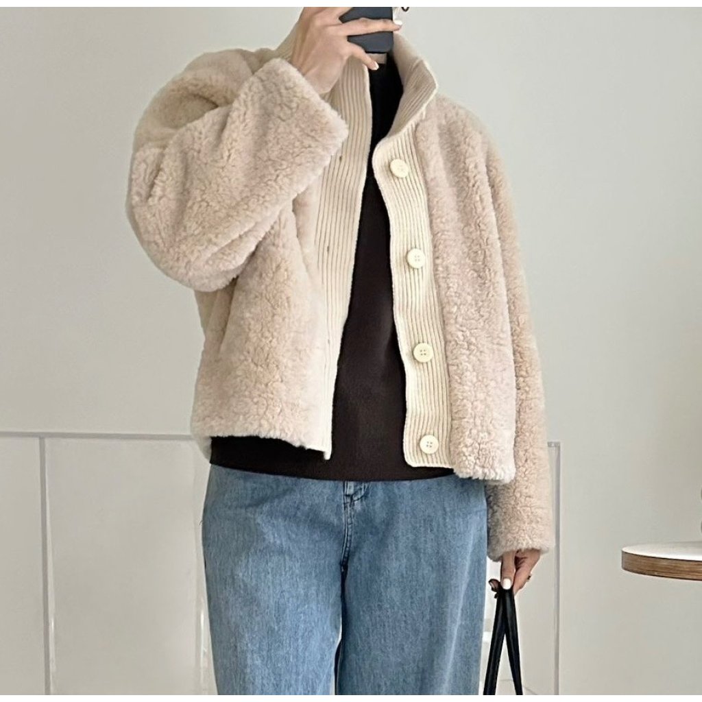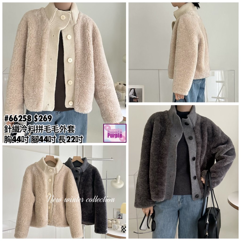 (現貨) #66258 BONNIE針織冷料拼毛毛有袋外套 (胸44吋 腳44吋 長22吋)