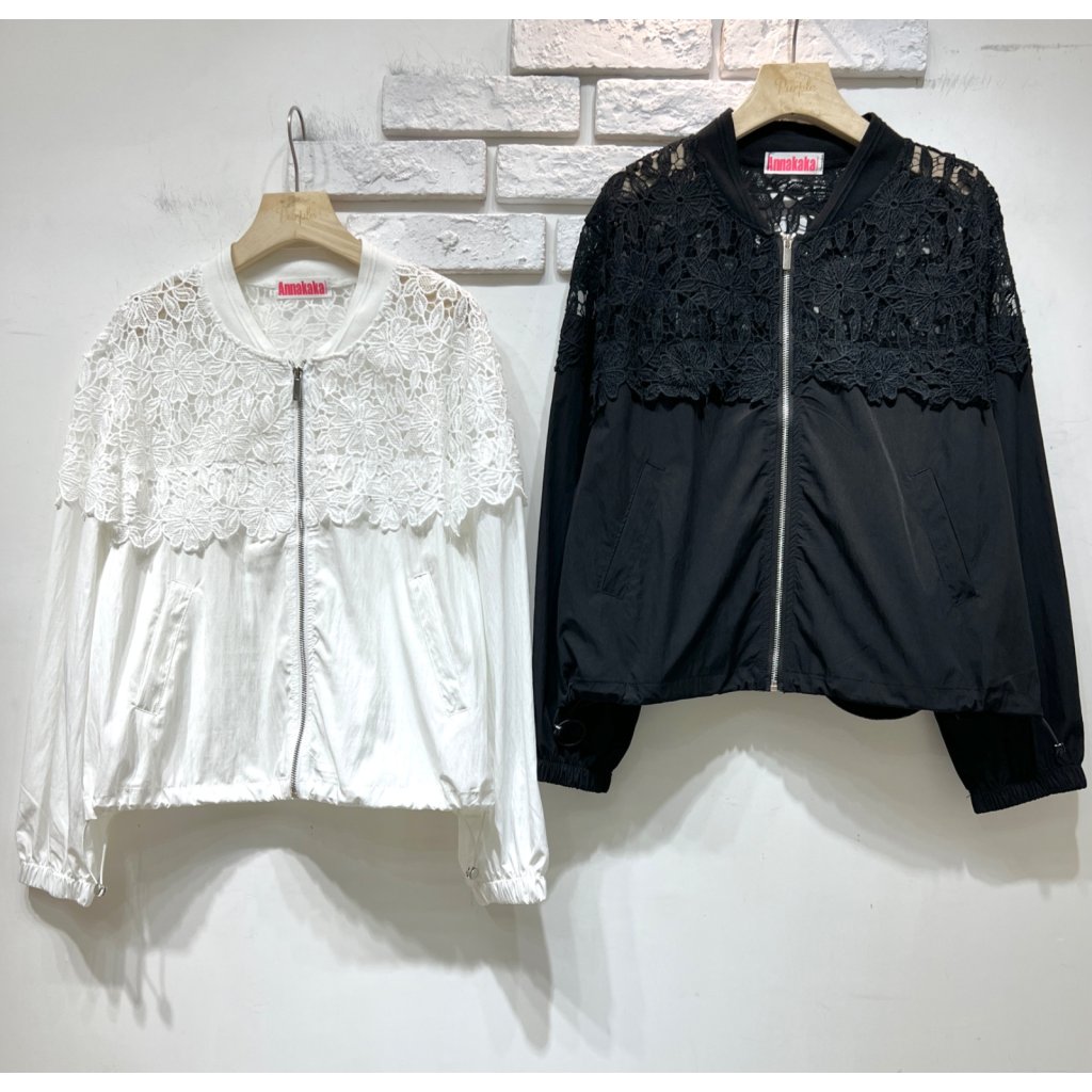 (現貨) #81921 韓國風褸料拼勾花喱士外套 (胸46吋 腳46吋 長22吋)