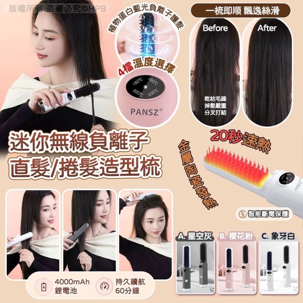 🌈迷你無線負離子直髮/捲髮造型梳💕