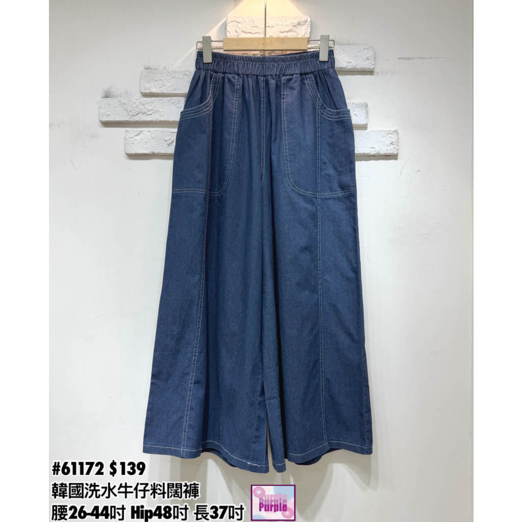 主頁 (訂貨約20天) #61172 韓國洗水牛仔料闊褲褲 (腰26-44吋 Hip48吋 長37吋)