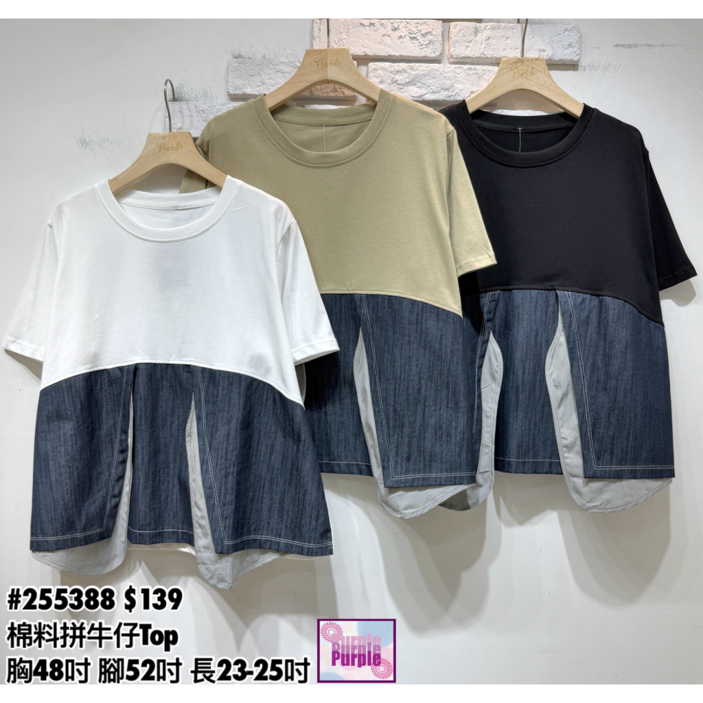 主頁 (訂貨約20天) #255388 棉料拼牛仔Top (胸48吋 腳52吋 長23-25吋)