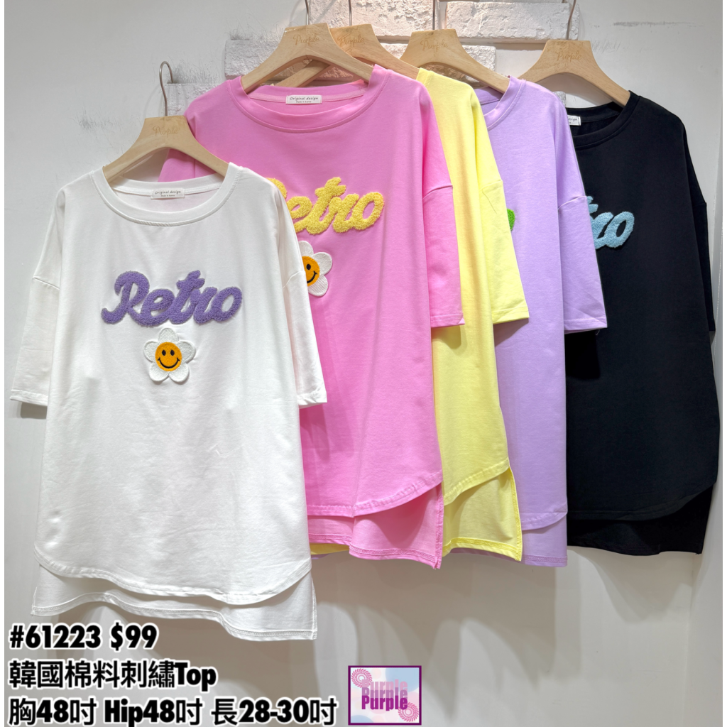 (訂貨約20天) #61223 韓國棉料刺繡Top (胸48吋 Hip48吋 長28-30吋)