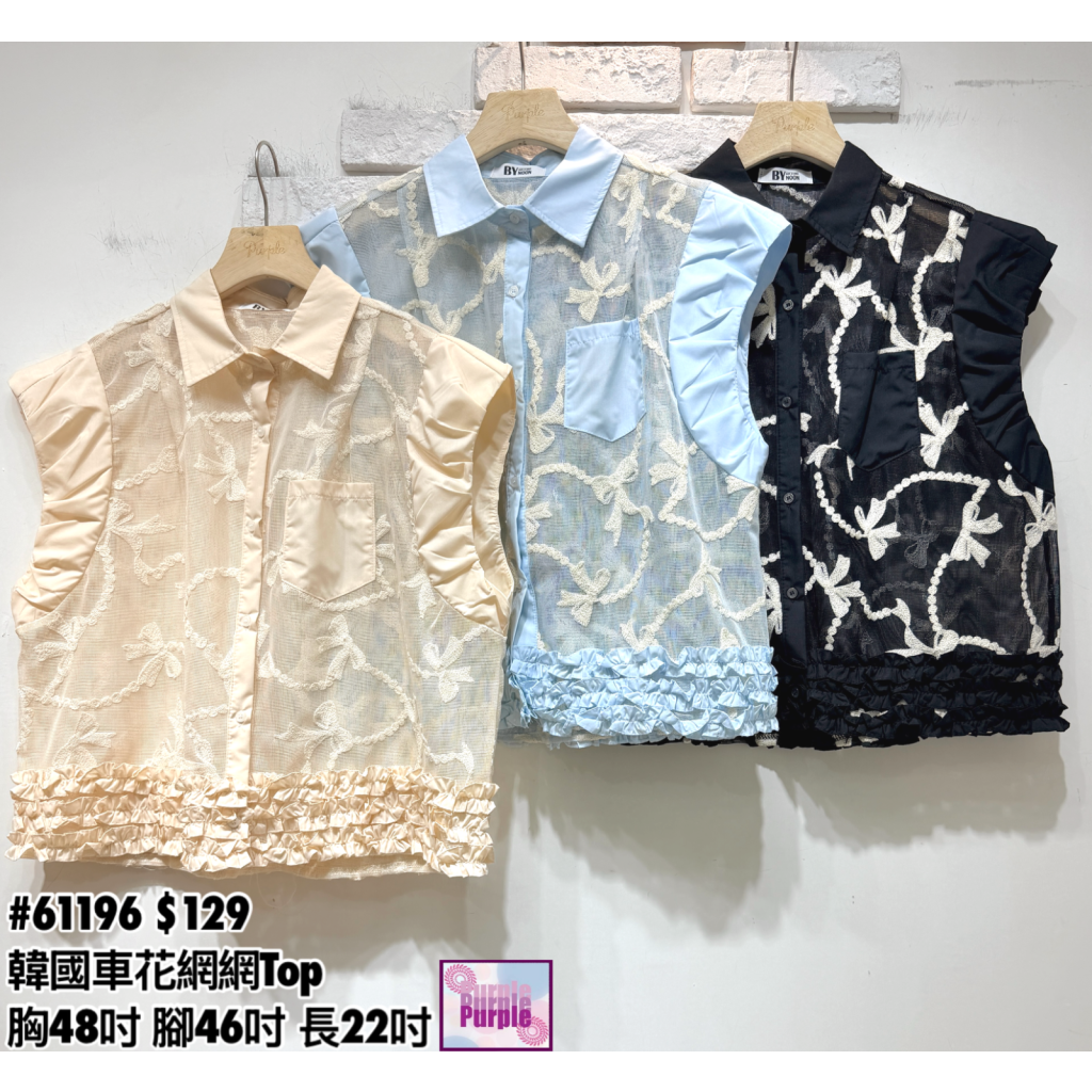 (訂貨約20天) #61196 韓國車花網網Top (胸48吋 腳46吋 長22吋)