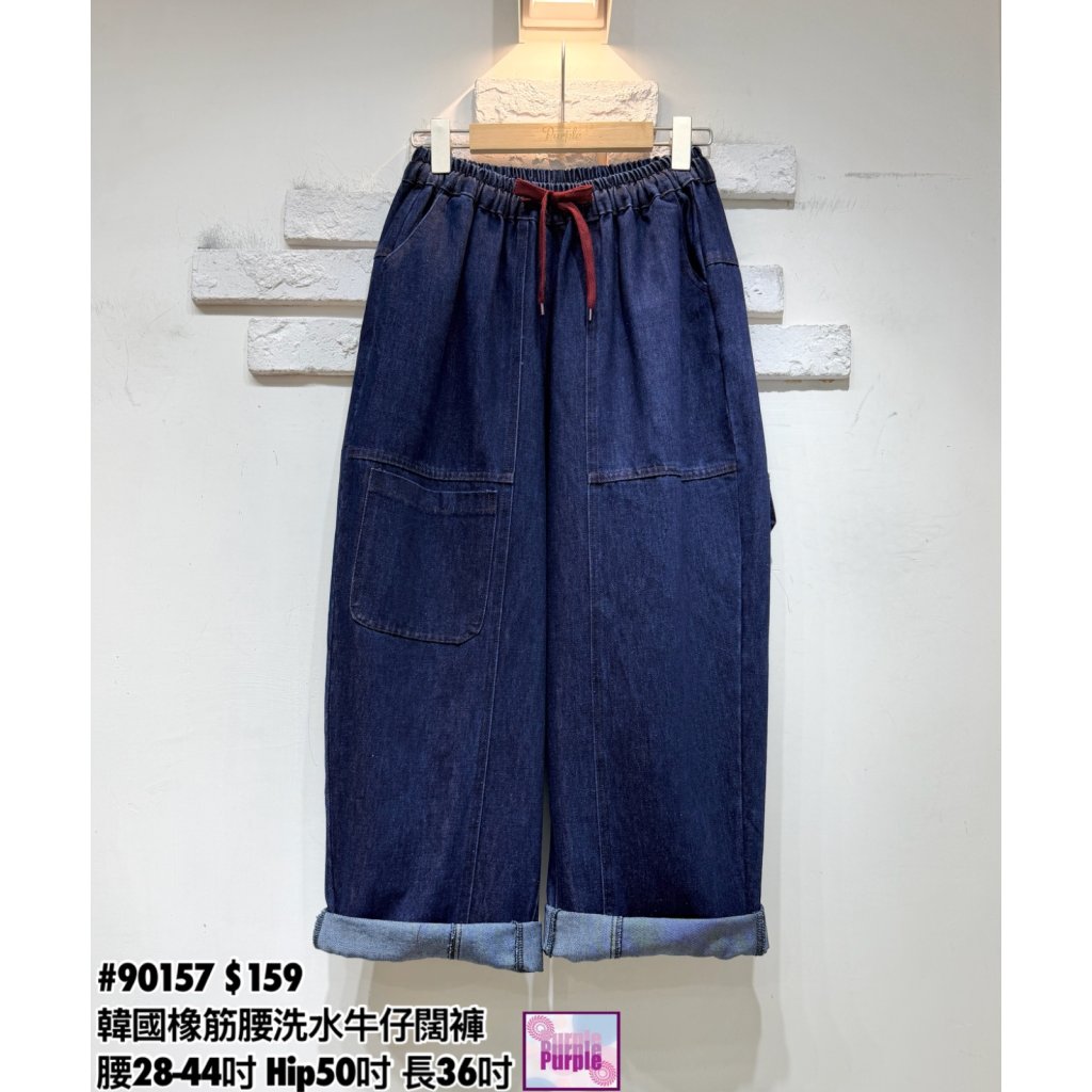 (訂貨約20天) #90157 韓國橡筋腰洗水牛仔闊褲 (腰28-44吋 Hip50吋 長36吋)