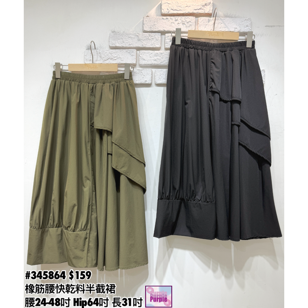 主頁 (訂貨約20天) #345864 橡筋腰快乾料半截裙 (腰24-48吋 Hip64吋 長31吋)