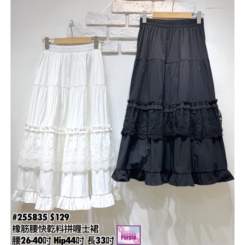 (訂貨約20天) #255835 橡筋腰快乾料拼喱士半截裙 (腰26-40吋 Hip44吋 長33吋)