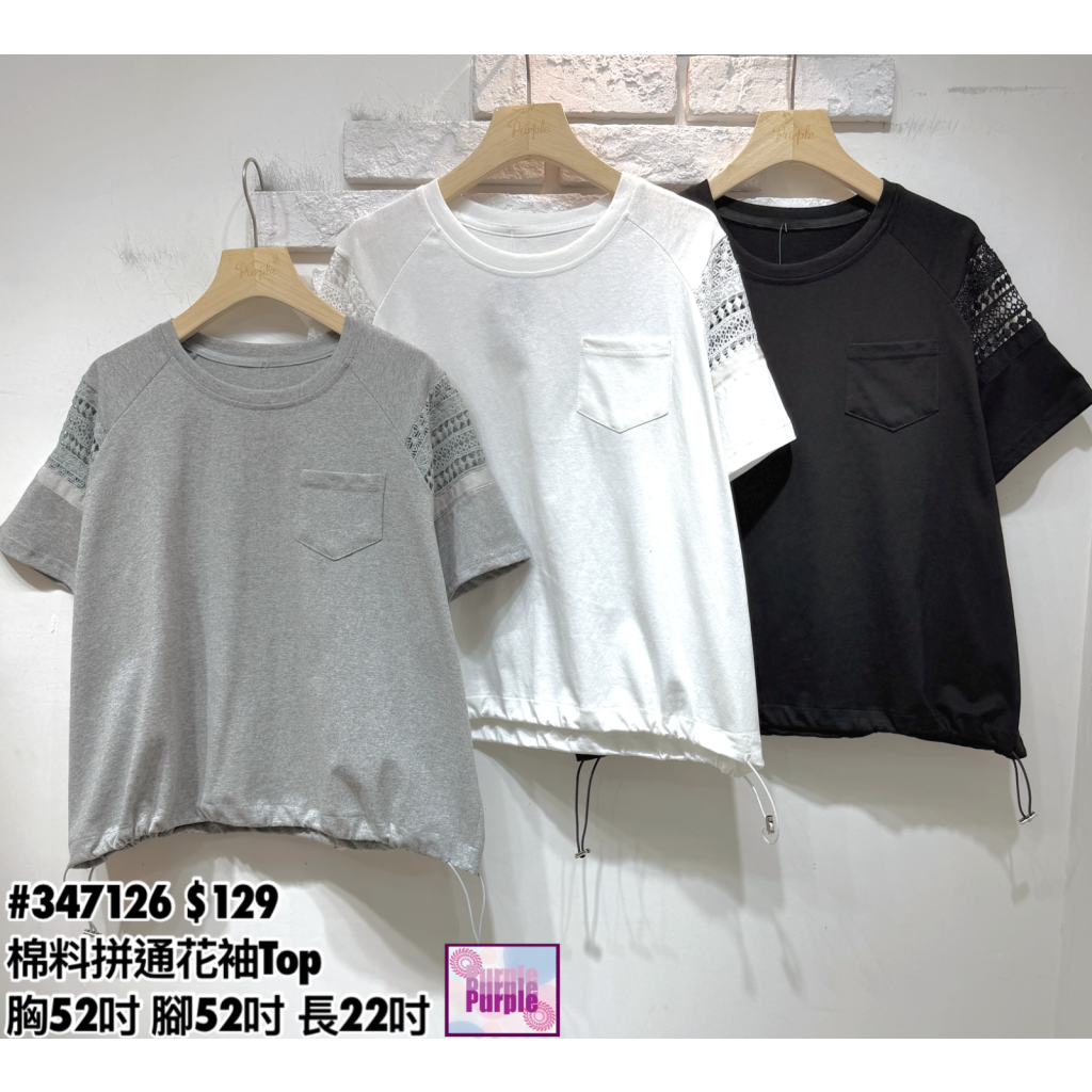 (訂貨約20天) #347126 棉料拼通花袖Top (胸52吋 腳52吋 長22吋)