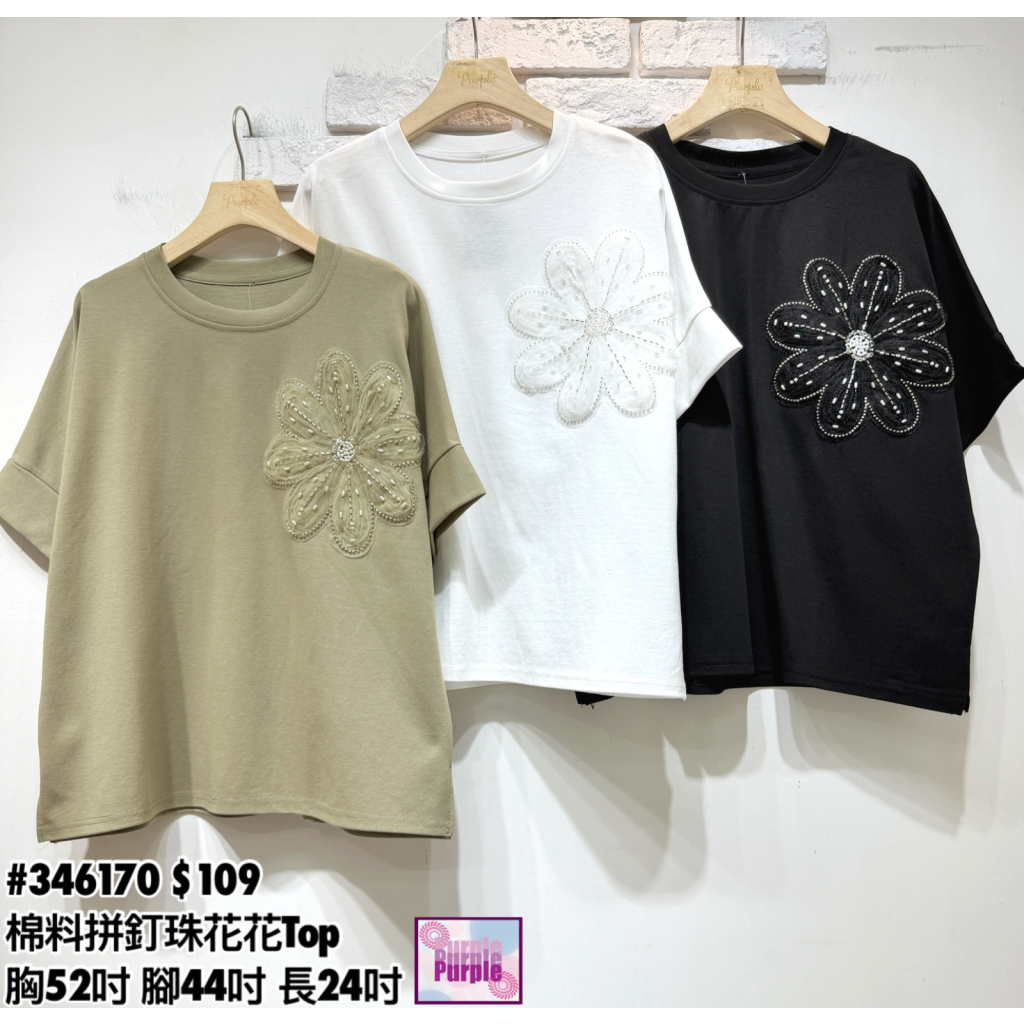 (訂貨約20天) #346170 棉料拼釘珠花花Top (胸52吋 腳44吋 長24吋)