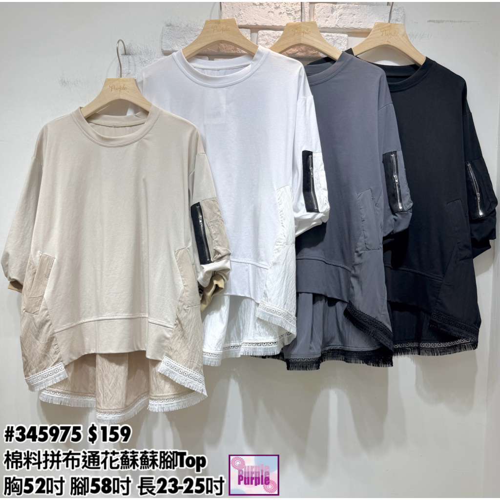 (訂貨約20天) #345975 棉料拼布通花蘇蘇腳Top (胸52吋 腳58吋 長23-25吋)