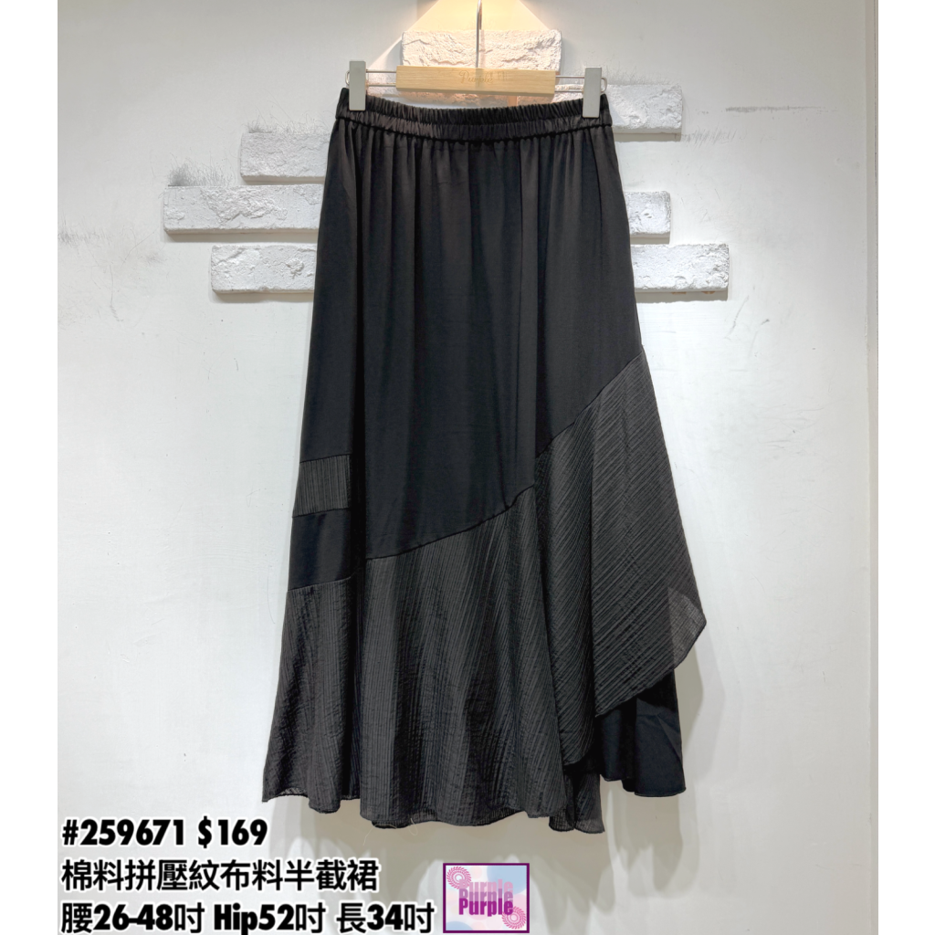 主頁 (訂貨約20天) #259671 橡筋腰棉料拼壓紋布料半截裙 (腰26-48吋 Hip52吋 長34吋)