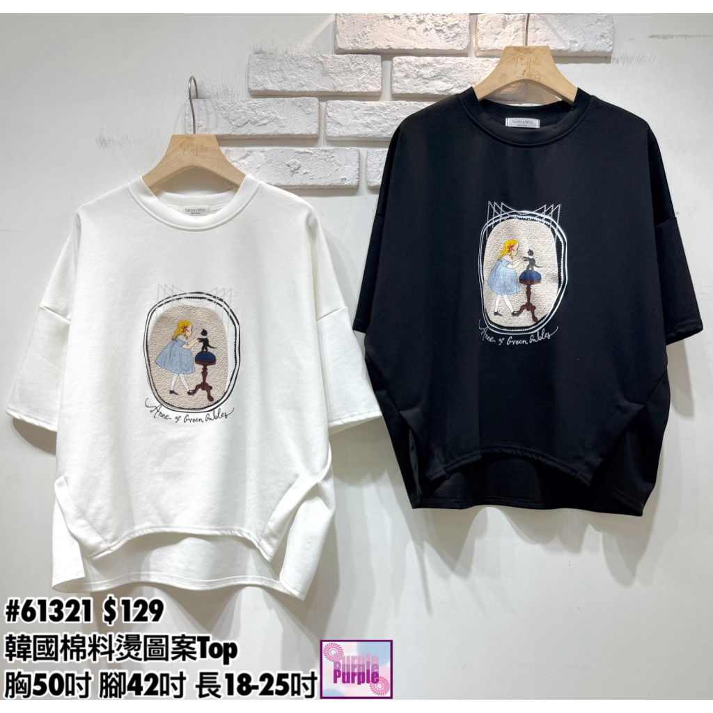 (訂貨大約20天) #61321 韓國棉料燙圖案Top (胸50吋 腳42吋 長18-25吋)